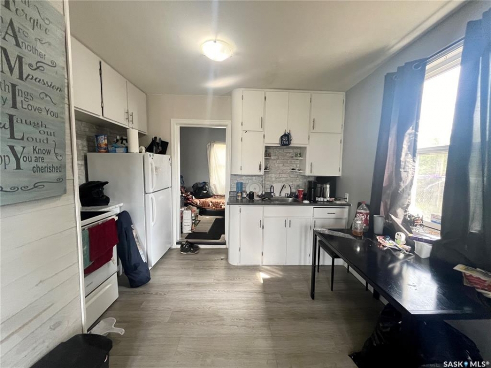 Welcome to the perfect starter home or revenue home with a tenant already in place. This home has all the charm! This home has been tastefully renovated, making it the perfect turn key home for a first time home buyer. Updates include, paint, flooring, new laundry room and new updated bathroom, newer water heater and updated windows throughout the years to bring piece of mind for years to come. Open concept layout, featuring the nice sized living room and into the kitchen. There is a bedroom located off the living room, along with main floor laundry as well. Outside features a large 14 x 22 shed for extra storage, plus a large yard for all your entertaining needs. Within walking distance to schools and amenities. Call today to schedule your viewing!