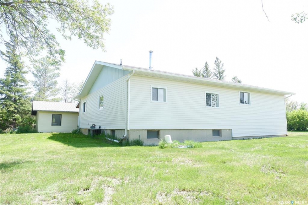 Located in the RM of Lake of the Rivers a short distance of only 3km southeast of Assiniboia. Over 4 acres on a well treed private parcel. The Home features 3 bedrooms, dining room with a wood burning fire place, large living room and main floor laundry. The basement features large windows. Heating is supplied by a natural gas forced air furnace complete with central air conditioning. The exterior is upgraded with newer vinyl siding, asphalt shingles and a new cover on the existing deck. Outside you will find a double detached garage and a workshop that features its own electrical panel and wood burning stove, as well you will find sheds for your storage needs.