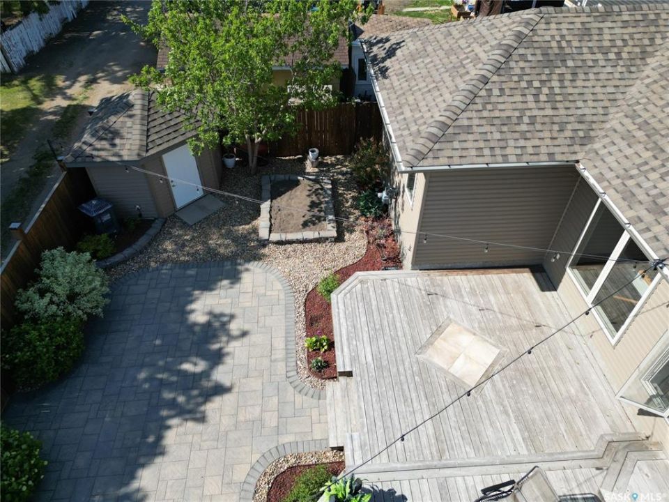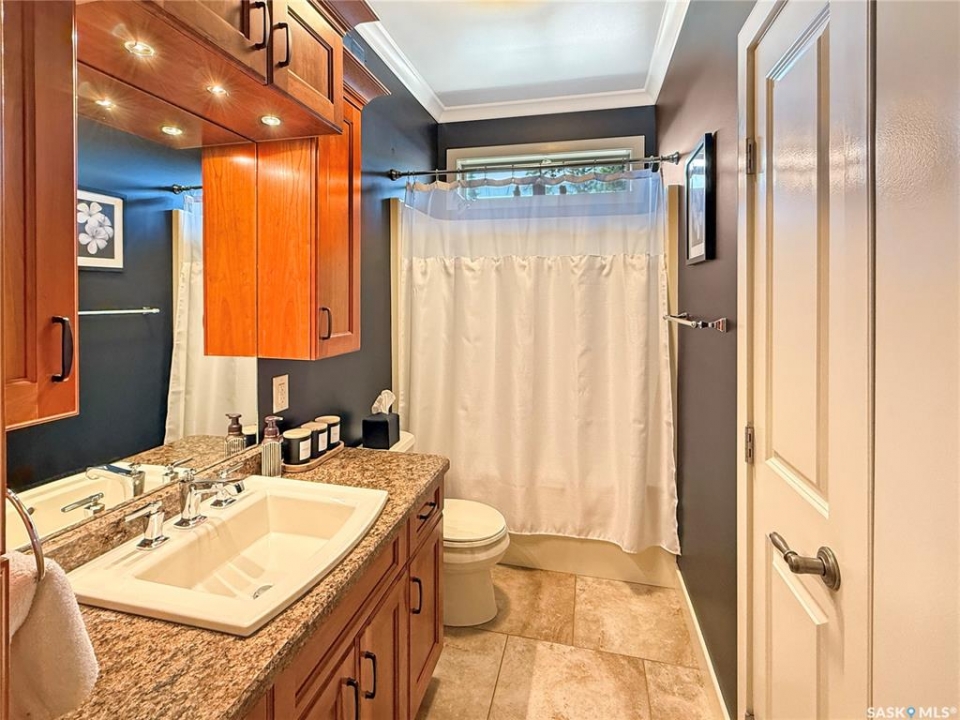 This beautifully maintained 1605 sq ft bungalow in Wilkie offers quality craftsmanship, custom finishes, and a thoughtfully designed layout ideal for family living. The main floor features 9' ceilings, 3/4” solid maple hardwood floors, and extensive custom trim and cabinetry throughout. Just off the spacious front entry is a flexible room currently used as a home office, with potential to serve as a third main floor bedroom. The open-concept living space is bright and welcoming, with large windows offering plenty of natural light and views of the beautifully landscaped, low-maintenance backyard. The kitchen is equipped with solid cherry wood cabinets, a large central island, walk-in pantry, and flows into the dining area and living room. The living room features a gas fireplace with custom built-ins, adding both warmth and character. The main floor also includes a convenient laundry/mudroom off the attached garage, a full 4-piece bathroom, a spacious second bedroom, and a large primary suite complete with walk-in closet and 3-piece ensuite. A wide, open staircase leads to the fully finished basement, where you'll find a large family room and bonus space with newly installed laminate flooring and roughed-in wet bar. Two additional bedrooms, a generous 3-piece bathroom with walk-in tiled shower, and plenty of storage complete the lower level. Additional features include in-floor heat in the basement and garage (powered by a high-efficiency boiler), central air, air exchanger, central vacuum, and a full appliance package. The exterior is beautifully finished and designed for easy maintenance, with a fenced backyard, deck, patio area, shed, drip irrigation system for trees, and raised garden beds. Underground sprinklers are installed in the front yard. Shingles on both the house and garage were replaced in 2023. This property is move-in ready and offers exceptional value with high-end finishes and a functional layout. Schedule your private showing today.