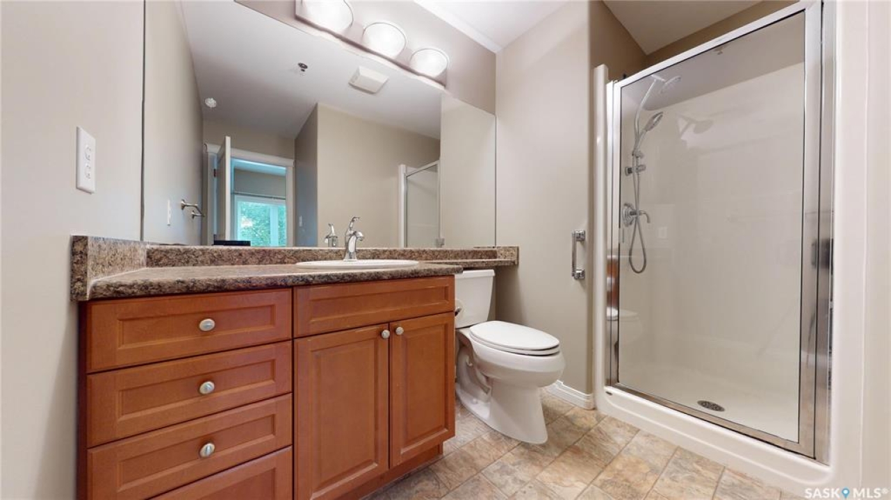 Welcome to this beautiful and cozy 2-bedroom, 2-bathroom condo ideally located in the desirable Wildwood neighbourhood, right by the golf course and close to parks, walking trails, shopping, and many amenities. Please view the Matterport 3D virtual tour in this listing. This spacious upper-main floor unit features a well-designed kitchen complete with ample counter and cupboard space, and sleek stainless steel appliances. The kitchen opens seamlessly to the dining area and living room, creating a perfect space for entertaining or relaxing. Step outside to your west-facing balcony and take in views of the beautifully landscaped grounds—perfect for relaxing evenings or morning coffee. The generous primary suite boasts a large walk-in closet and a private 3-piece ensuite. A second bedroom, a full 4-piece bathroom, and in-suite laundry add to the comfort and convenience of this home. Additional features include central air conditioning, 9 foot ceilings, and the unit comes with 2 parking stalls; one underground heated parking stall with a storage space, plus one surface parking stall. The building is quiet, well-maintained, and home to a welcoming community with great neighbours. Residents enjoy excellent amenities including a guest suite, a fitness room, and an amenities lounge for social gatherings or events. Don't miss your opportunity to own this beautifully maintained condo in a sought-after location! Call now for your own private viewing!