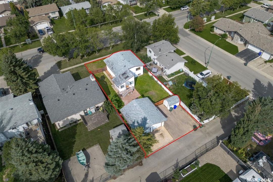 4 bedroom 2 bath bungalow with 2 car detached garage & RV parking located in the desirable Crescent Acres neighborhood, this fully developed 1,056 sq. ft. bungalow offers a practical layout with plenty of space for comfortable living. The main floor features a large eat-in kitchen with ample cabinetry and room for family dining, as well as a bright, open living area with large windows that overlook the fully fenced backyard. A cozy gas fireplace adds warmth to the space, creating a comfortable area to relax. There are two bedrooms on the main level, including a spacious primary bedroom with his and hers closets, plus a full 4-piece bathroom. The lower level offers even more living space, including a family room with built-in cabinetry, two additional bedrooms, another full 4-piece bathroom, and a generous laundry and storage area. Enjoy outdoor living with a private backyard that includes a fire pit, storage shed, and room to entertain or unwind. The property also features a detached two-car garage, RV parking, central air, central vacuum, and all existing appliances. A solid, move-in-ready home in a great location.