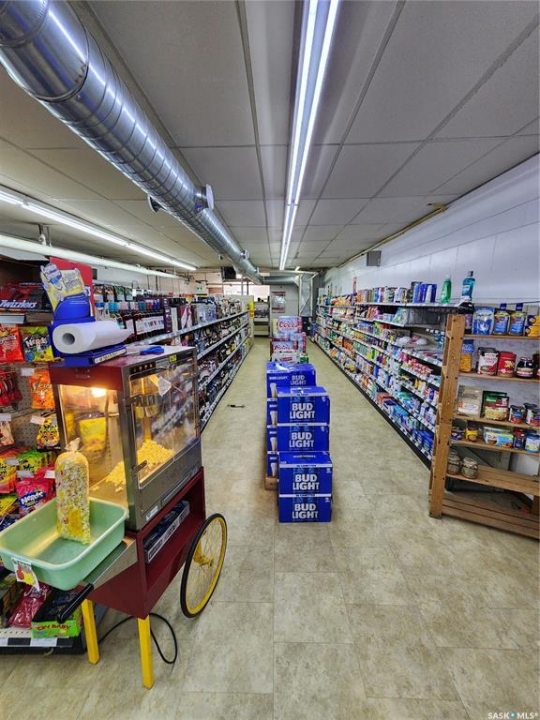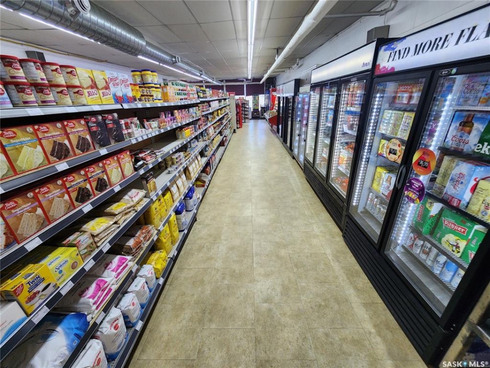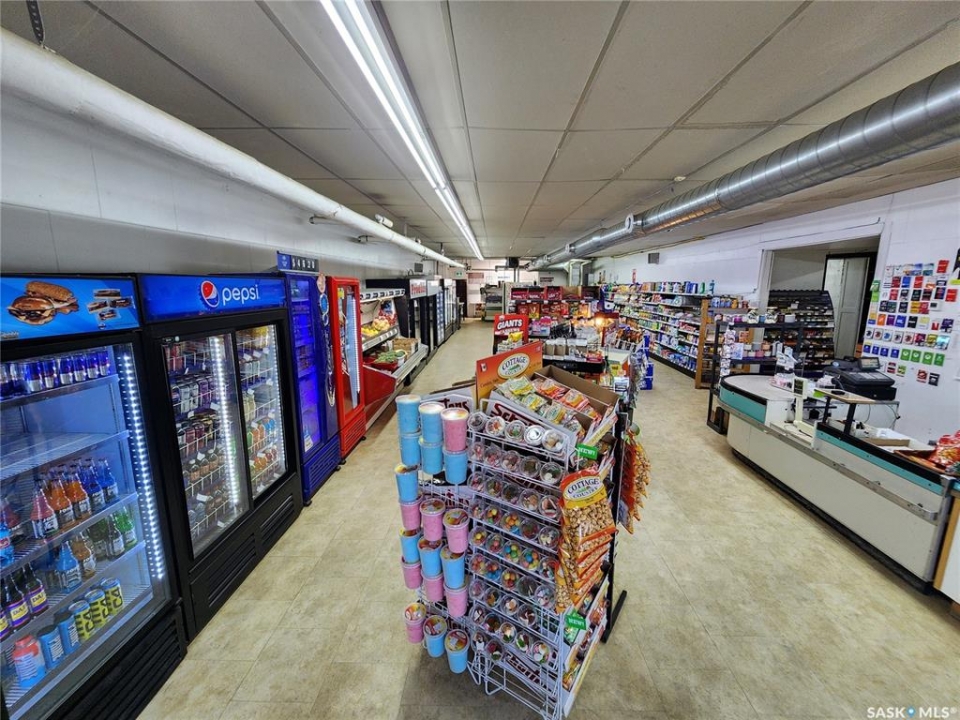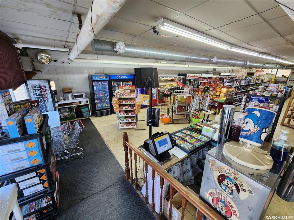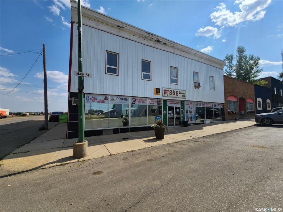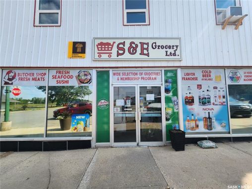 Welcome to S & E Grocery!. This well-kept, well-run business in the thriving agricultural community of Radville, SK serves as a grocery, lottery terminal, meat shop, and the go-to location for liquor and beer (Retail Liquor Permit). Ideally located on the corner of bustling Main Street, this business benefits from incredible exposure from several directions. If you've been looking for that ideal business offering both commercial and residential opportunities, this is it. At over 4900 square feet of commercial space and another approx. 3700 of upper residential space (total 8616 sf), this building provides ample space for the store as well as a recently renovated upper residential floor, perfect for employee or family living quarters, or an opportunity to earn extra tenant income. Inside the main doors, you're immediately struck by the cleanliness, pride of ownership, brightness, and size. The store is divided into two sides, with the grocery, lottery, meat case, beer/wine/liquor and main till on one side and the stock room, coolers, as well as extra grocery, Bath and Body Works products, bottled RO-pure water, and other misc. items on the other. For bonus income, the owner has installed vending machines in the front entry, available 24hr. Upstairs, the space is divided in half with laundry, kitchen, bedrooms, two bathrooms, and living space on each side. A fifth bathroom is in the main hall - ideal for use by employees. This residential area is a perfect set up for extended family wanting their own space or employees. There is also a rooftop area with new metal roofing and a sizeable included greenhouse. A full list of included equipment as well as information related to the business will be provided to qualified buyers. With so many offerings, strong yearly sales, being the primary retail liquor outlet in Radville, and S&E Grocery's excellent reputation, this property will attract interest. Call or email today for more information and showings.