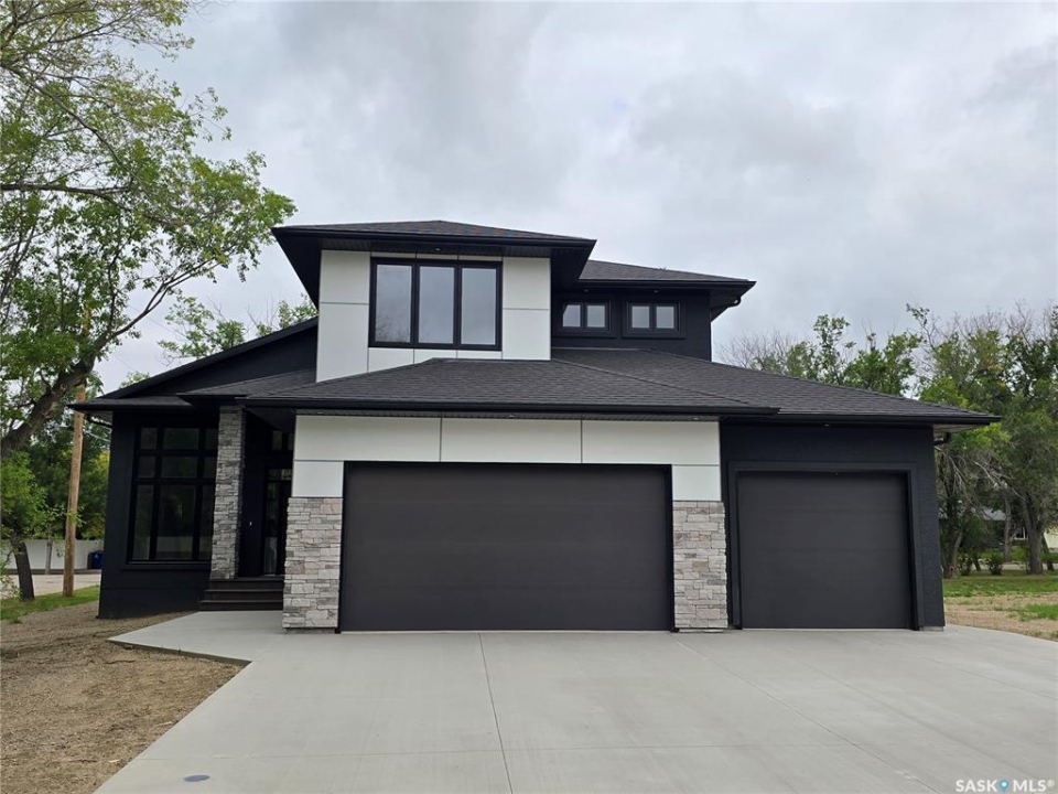 Welcome to this stunning brand new two-story home, thoughtfully designed for modern living and effortless comfort. Step inside to discover an open and inviting main floor with a wall of windows that's screams elegance. The chef's kitchen boasts sleek finishes, quality cabinetry, and seamless flow into the dining area and living room, perfect for entertaining or relaxed family evenings. Cozy up by the fireplace or step outside to the covered deck, ideal for year-round outdoor living. There is a spacious primary suite, offering privacy and convenience with a luxurious En-suite, massive walk-in closet, and access to the main floor laundry. The main level also includes a stylish powder room for guests. Upstairs, you'll find two generously sized bedrooms, both with walk-in closets and a full bath, offering a private space for family or guests. The unfinished basement provides endless potential—create a home gym, media room, or additional living space to suit your needs. The basement is also set up to accommodate two more bedrooms, a bathroom, and lots of storage. There is also an amazing heated triple car garage. This new home comes with 1 year New Home warranty, and a 3 year tax exemption from the City of Weyburn that is transferable to the buyer. This home blends functional layout with modern elegance and is ready to welcome you home. Don't miss your chance to make it yours!