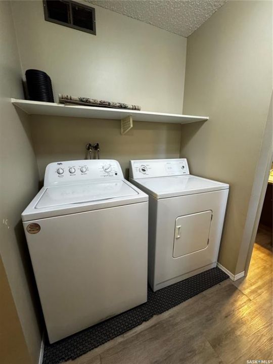 Welcome to this rarely available 2-bedroom, 2-bathroom condo boasting quiet south-facing views and 1,160 sq ft of comfortable living space. The spacious white kitchen offers ample cabinetry, generous counter space, and a full appliance package, seamlessly flowing into the oversized living and dining area. Step through the balcony doors onto your expansive 37-foot-long balcony, complete with convenient storage units at each end. Down the hall, you'll find a dedicated laundry space and two well-proportioned bedrooms. The sizable master suite is a true retreat, featuring its own 3-piece ensuite washroom, a wall air conditioner, and two large closets. This property presents an excellent opportunity for affordable living or a valuable addition to your revenue portfolio. Embrace the ease of condo living, where building maintenance, grass cutting, and snow removal are all taken care of for you. Conveniently located near the Aquatic Centre, various restaurants, Swift Current Comprehensive High School, and Irwin School. Call your REALTOR � today and schedule your viewing!