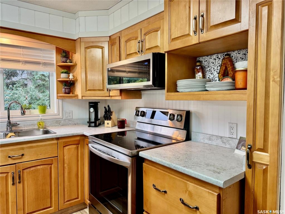 This beautifully updated 2 bedroom, 2 bathroom home in Humboldt shows true owner pride inside and out. Just half a block from the elementary school, the property features gorgeous mature landscaping and a covered patio to enjoy the private backyard retreat. The main floor offers a bright living space, completely renovated kitchen/dining with modern cabinetry and island, and convenient main floor laundry. Recent upgrades within the past year include: new kitchen and island, both bathrooms fully updated, new flooring on the main, 100 amp panel box, updated plumbing, new exterior doors, and all appliances. The second level provides additional living space, second bathroom, bedroom and storage. An attached garage adds everyday convenience. With its long list of improvements, move-in ready appeal, and prime location close to school, this home is a fantastic opportunity in Humboldt. Call today to view!