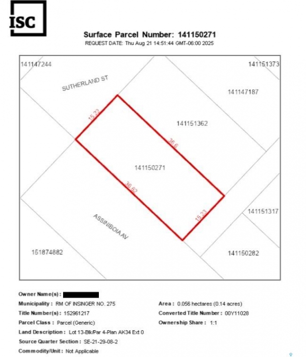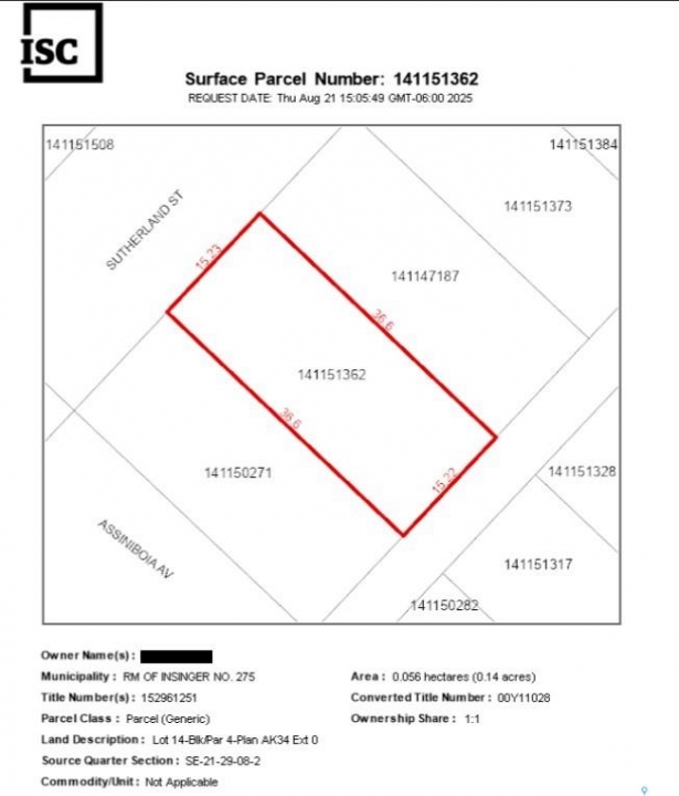 Opportunity knocks! The remains of a dwelling on a 12,000 square foot double lot with a detached garage have tremendous potential for buyers with construction, structural/foundation and framing background, and most importantly, "Vision". The large lot can accommodate trucks, vehicles, or even a billboard tower for advertising revenue (with the proper zoning changes). Insinger is surrounded by farm owners and acreage-type dwellings, and if a new owner changes the zoning to suit other uses, for example, a hardware store, agriculture store, building material yard, agriculture equipment repair facility, lumber store, or others, will have a direct view from Highway 16. Buyers may consult the municipality regarding potential zoning changes for a code-compliant commercial facility. This 100' x 120' corner lot is visible from Yellowhead Highway 16 (Yorkton-Saskatoon), and any activity will be visible from Highway 16, in addition to residential use.