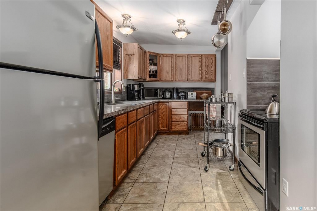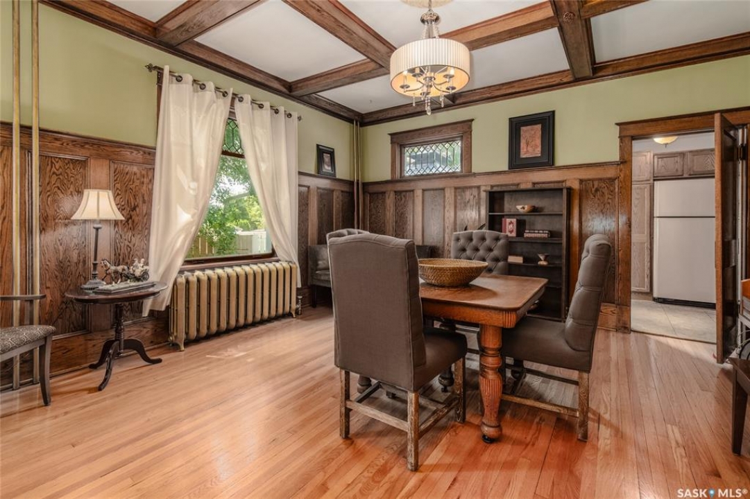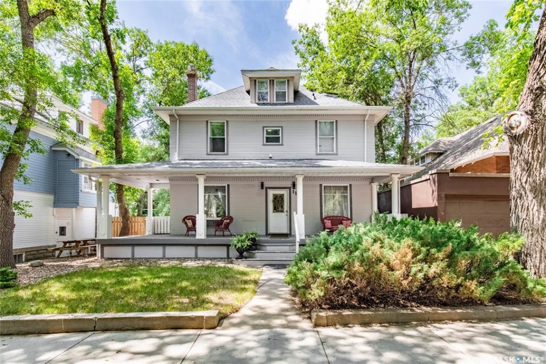 Welcome to this beautiful, character-filled home nestled on the tree-lined and sought-after Clifton Avenue. From the moment you arrive, the inviting front covered porch sets the tone—this is a home with heart, history, and so much to offer! Step inside and you'll find a main floor full of warmth and possibility. A bright front office and 2-piece bathroom offer function and flexibility right off the entry. The living room is cozy and welcoming, featuring a wood-burning fireplace with stunning green tilework — a true focal point with vintage appeal. The dining room is simply breathtaking, with rich wood moldings and exposed ceiling beams that make every dinner feel special. The kitchen has updated countertops and a layout that could easily be opened up into the adjacent breakfast room for even more space and flow. Head upstairs and you'll find four comfortable bedrooms and a 4-piece bathroom complete with a charming clawfoot tub — classic and functional. The third level is a hidden gem: a sprawling loft-style room with its own 4-piece bathroom and walk-in closet. Whether you use it as your primary suite, a creative studio, or a bonus room, it's a space full of possibilities. The basement offers high ceilings and a wide-open layout, ready to be finished however you dream it — home gym, rec room, extra bedrooms... the sky's the limit. Outside, enjoy a fully landscaped yard, large deck, and complete fencing for privacy. There's even a single-car garage to round it all out. This home is more than just a place to live — it's a piece of Moose Jaw's history, beautifully preserved and waiting for its next chapter. Don't wait… book your private viewing today!