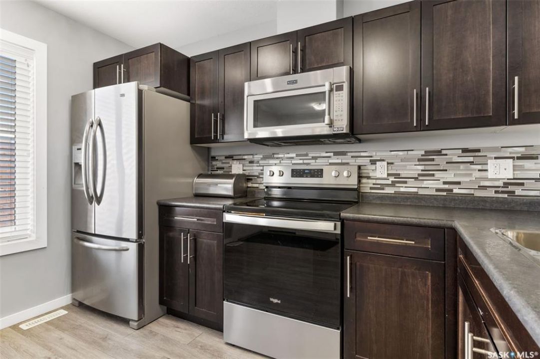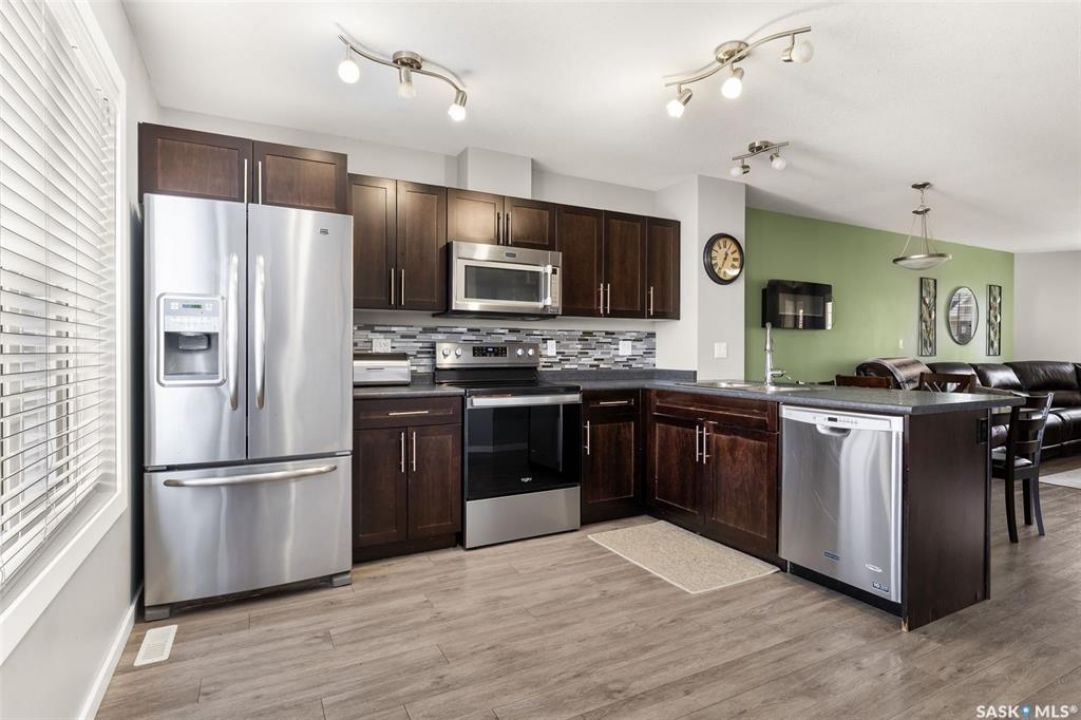 Welcome to 4690 Albulet Drive in Harbour Landing. This 1266 sqft 2 storey home, with No condo fees, features dual primary bedrooms, each with their own walk in closets and full bathrooms. The main floor features an open concept with living room, dining area, and a spacious kitchen with pantry and a 2 piece bathroom. The second floor also includes a convenient washer and dryer. Basement is open for development. The backyard features an awesome low maintenance space with patio and no grass to cut and leads to a single detached garage. Great south end location close to the elementary school and all other amenities. Don't miss this one!
