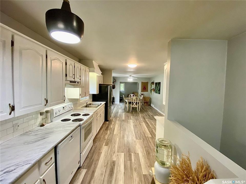 Step into this 1,500 sq ft home in Redvers, SK, blending thoughtful updates with comfortable living. Originally built in 1949 and expanded in 1994, this spacious property offers convenience in a family-friendly location right across the street from the school. Inside, the open-concept kitchen, dining, and living room is perfect for entertaining, highlighted by painted white cabinets, updated countertops, and a large bay window that fills the space with inviting natural light. Modern laminate and vinyl flooring flow throughout the main level, complemented by some PVC windows. The home also features a large mudroom, main floor laundry, and a cozy covered deck—ideal for enjoying summer evenings. A high-efficient furnace ensures year-round comfort, while the 22x12 single detached garage covered parking and storage. Redvers is a welcoming community where small-town charm meets modern amenities. Known for its strong agricultural roots and close-knit spirit, Redvers offers K–12 schooling, a variety of shops and services, healthcare facilities, and recreational opportunities for the whole family. Its location makes it a hub for those who value both convenience and a quieter lifestyle, while still being within reach of larger centers. Whether you're raising a family, downsizing, or seeking a slower pace, Redvers is a place where you can truly feel at home.
