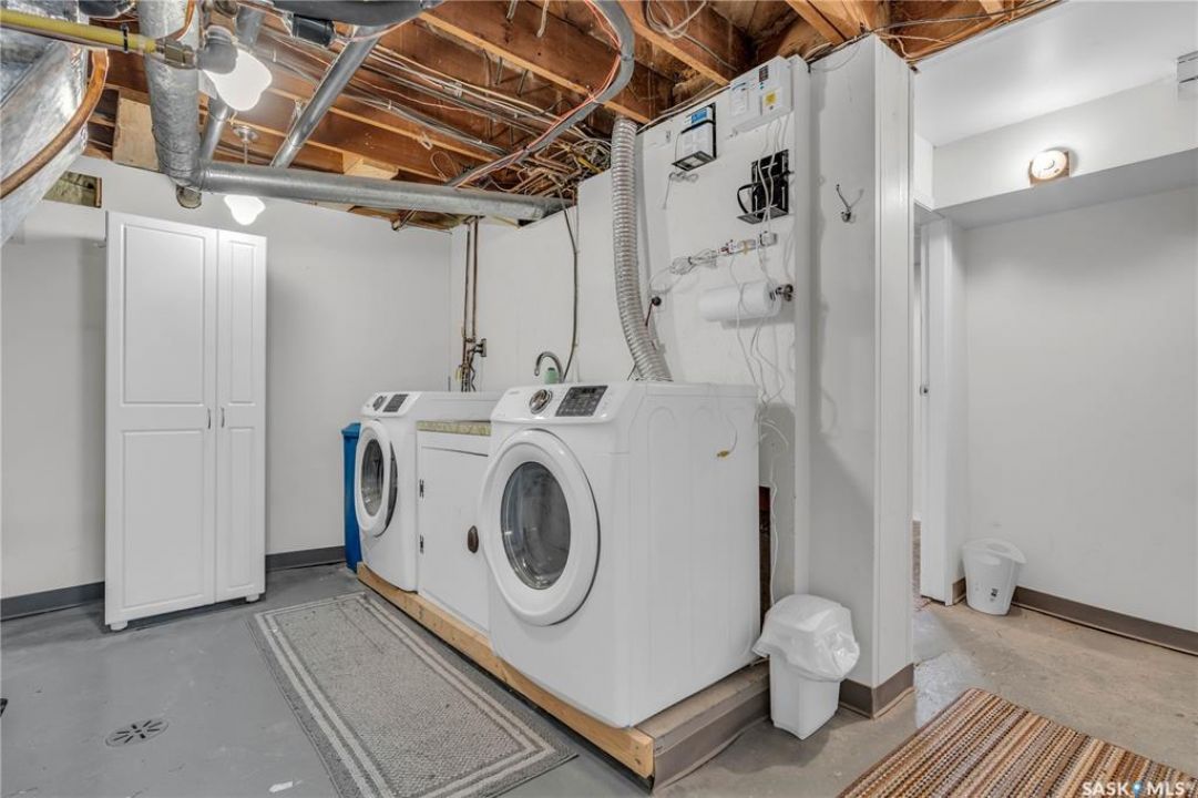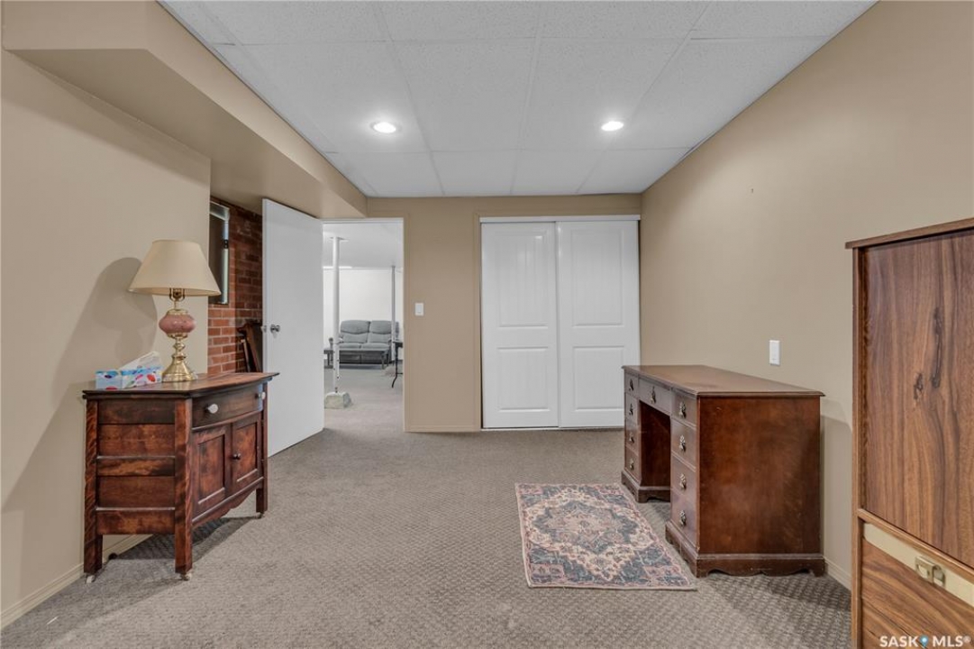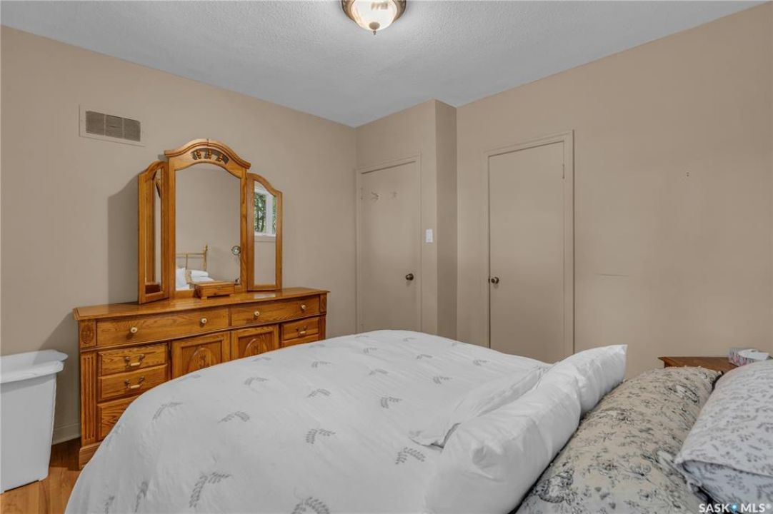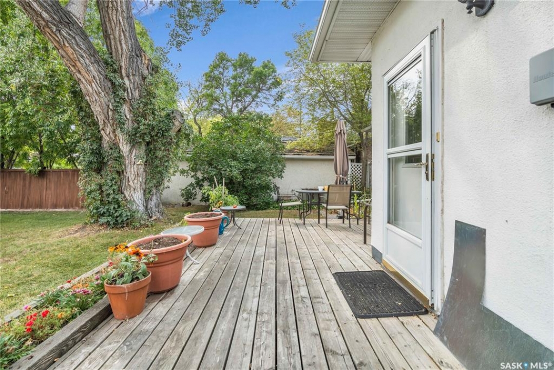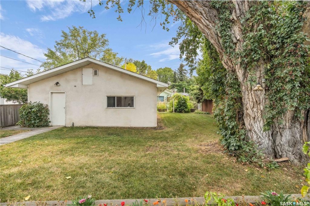This 1,135 sq ft bungalow offers totally functional space in one of Regina's most sought-after neighbourhoods. Step inside and you're welcomed by the bright living room, featuring original hardwood flooring, a large picture window for plenty of natural light, and a cozy gas fireplace for winter evenings. The home also boasts a ginormous kitchen—complete with quartz countertops, mint-condition oak cabinetry, and enough space for a full-sized dining table. Rounding out the main floor are three spacious bedrooms (two with charming corner windows), the original hardwood carried throughout, a 4-piece bath, and a convenient mudroom leading to the backyard. The fully developed basement extends your living space with a huge rec room, a cozy nook perfect for hobbies or a reading area, a 5-piece bathroom, a den, plus a laundry/utility room with additional storage. Notable upgrades and features include: a brand-new air conditioner, underground sprinklers, hi-efficient furnace, and an upgraded sewer line. Outside, the backyard is full of character with a deck, adorable wooden pathways, a lawn, garden space, and the whimsical “hundred-acre tree.” To top it off, the oversized 32x24 double garage is a rare find—perfect for the handyman or DIYer. Don't miss this opportunity to own a home full of charm and character in a gorgeous Lakeview location!