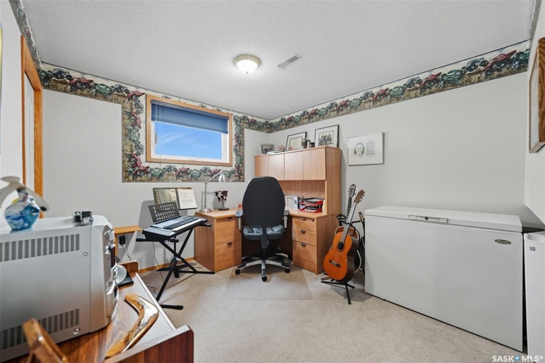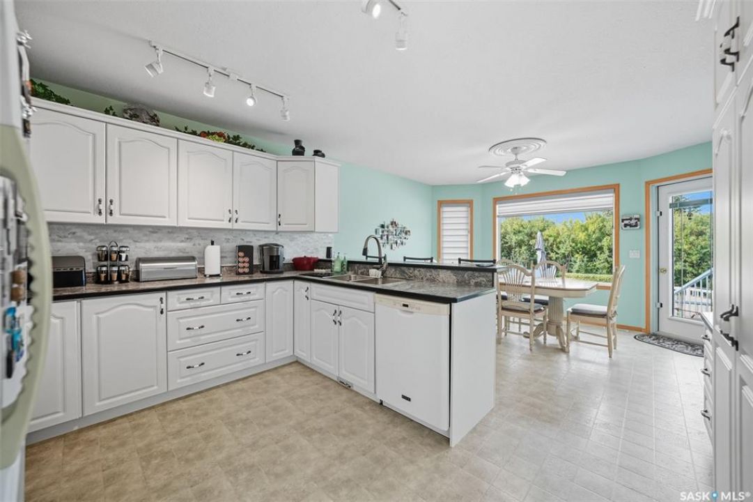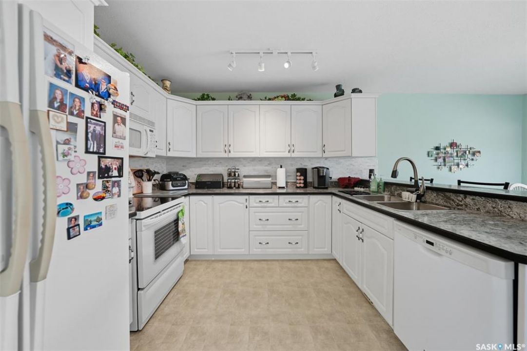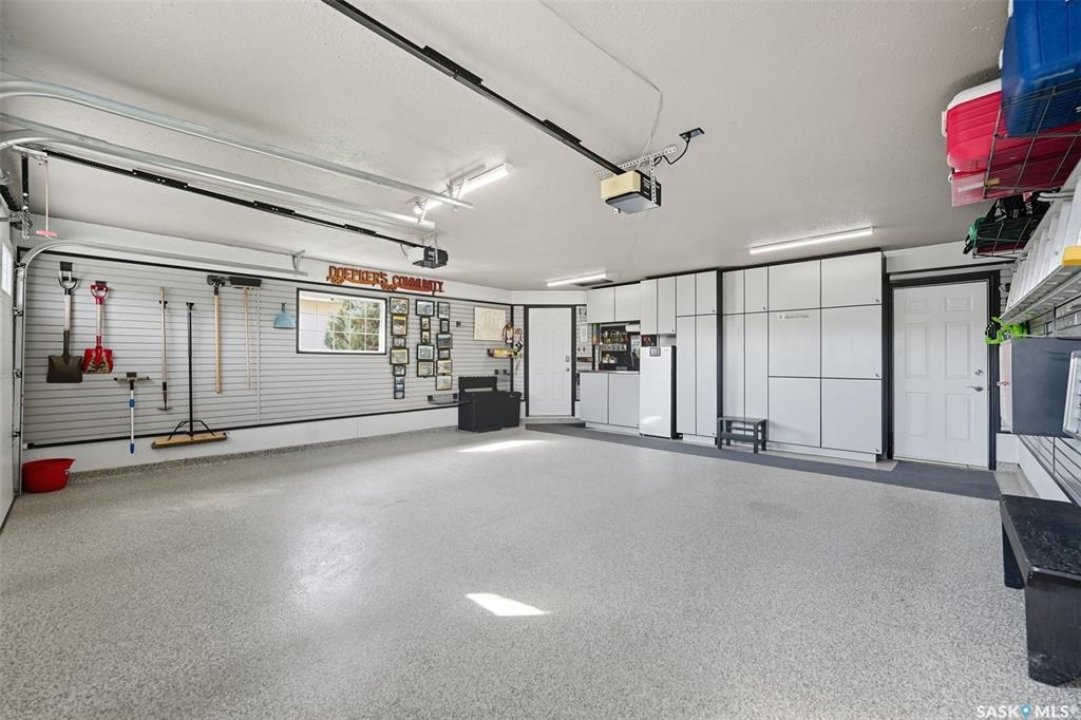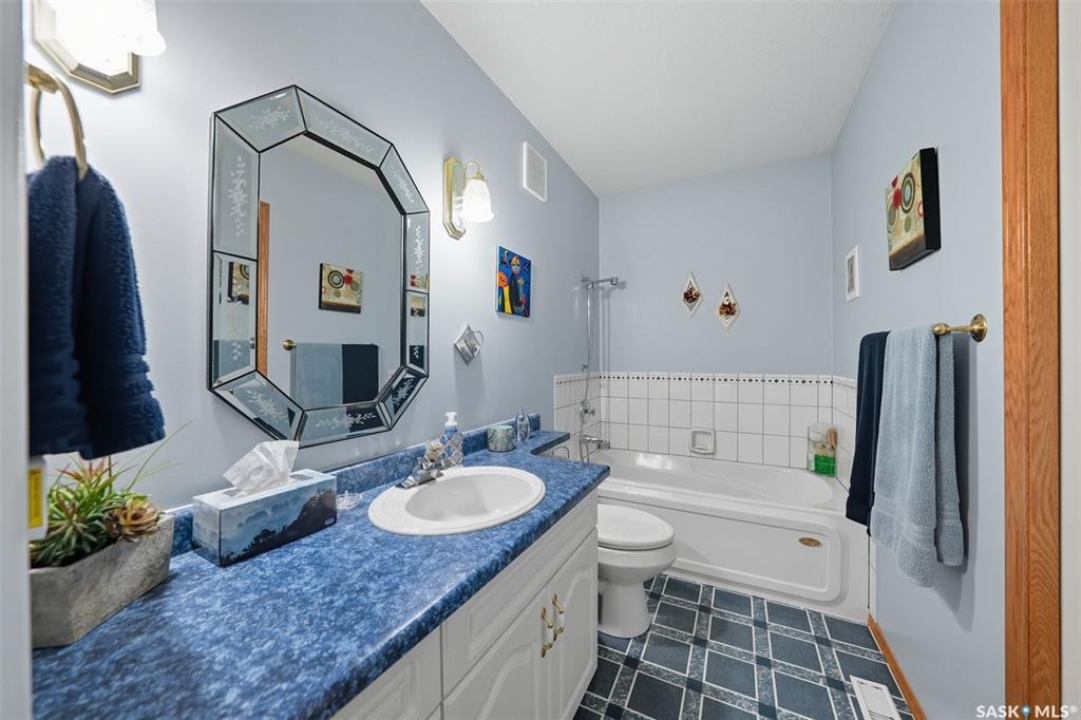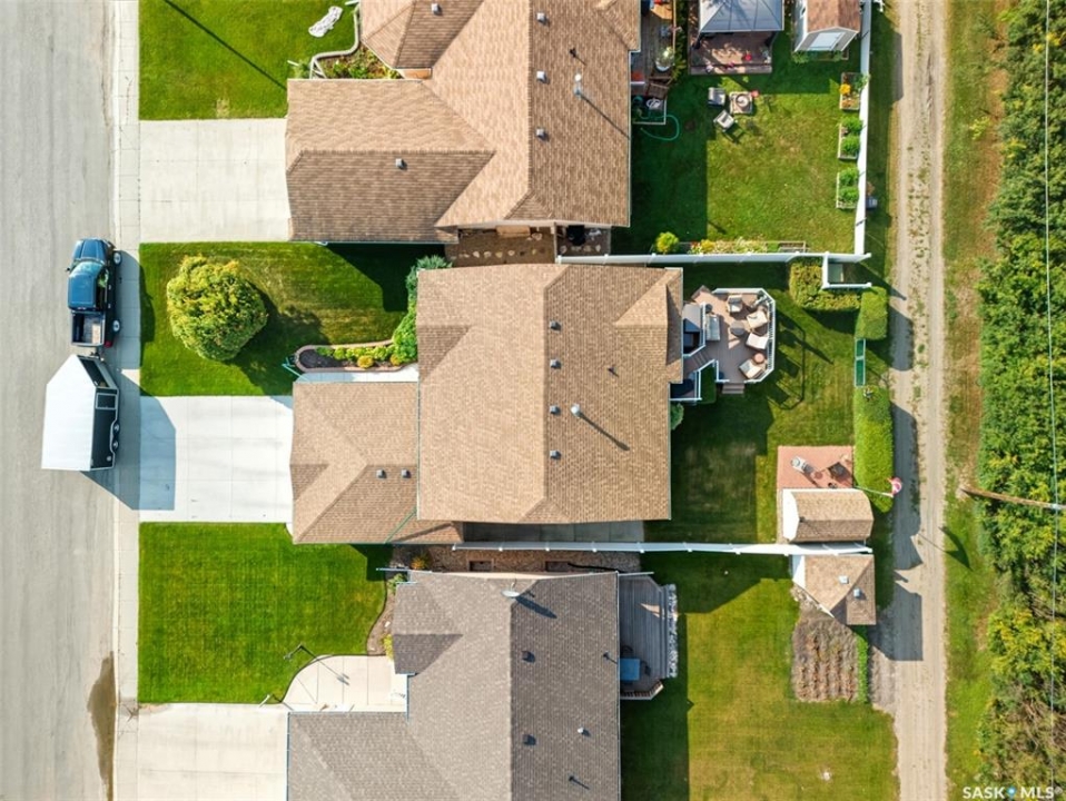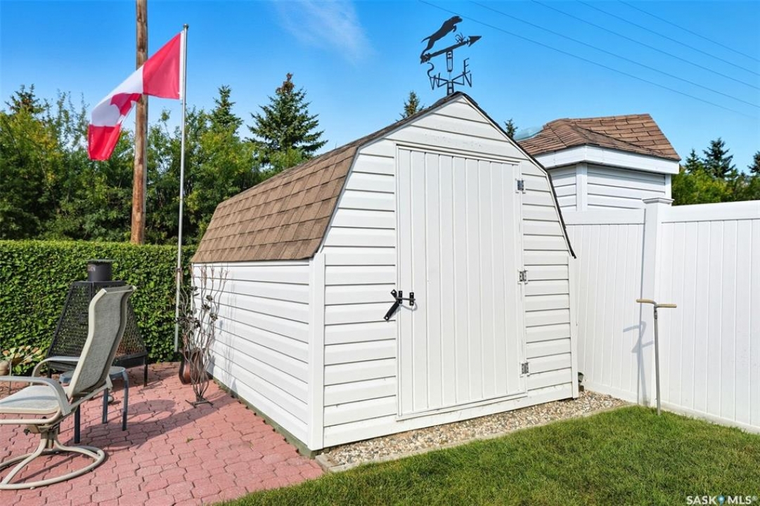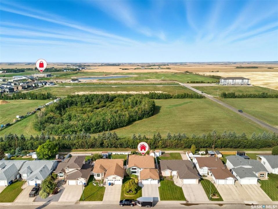 Welcome to this immaculate bi-level home, perfectly situated in a highly desirable neighborhood near the Uniplex, and a variety of amenities. Backing a peaceful tree line with open prairie views, this property offers a rare combination of privacy and convenience. Step into a bright and inviting main level, where soaring ceilings and floor-to-ceiling windows in the front foyer and living room create an impressive sense of space. Decorative niches and ledges add character and style as you move into the heart of the home. The well-designed kitchen features an abundance of white cabinetry, seamlessly connected to the dining area with access to a maintenance-free, two-tiered deck—perfect for entertaining or simply enjoying the outdoors. The main floor is complete with a luxurious primary bedroom with a 3-piece ensuite, an additional bedroom, and a 4-piece bathroom. The lower level continues to impress with a stunning decorative glass feature overlooking the main living room, a spacious family room with a cozy natural gas fireplace, two additional bedrooms (including one with a walk-in closet), and a 3-piece bath/laundry room with plenty of built-in cabinetry. Car enthusiasts and hobbyists will love the garage, outfitted with cabinets and Handiwall slatwall systems for exceptional organization. Outside, the beautifully landscaped yard showcases mature trees, shrubs, hedges, flower beds, fire pit area, storage shed, and a fully fenced design that backs onto green space. This property truly shines inside and out—showing 10/10 with pride of ownership throughout!