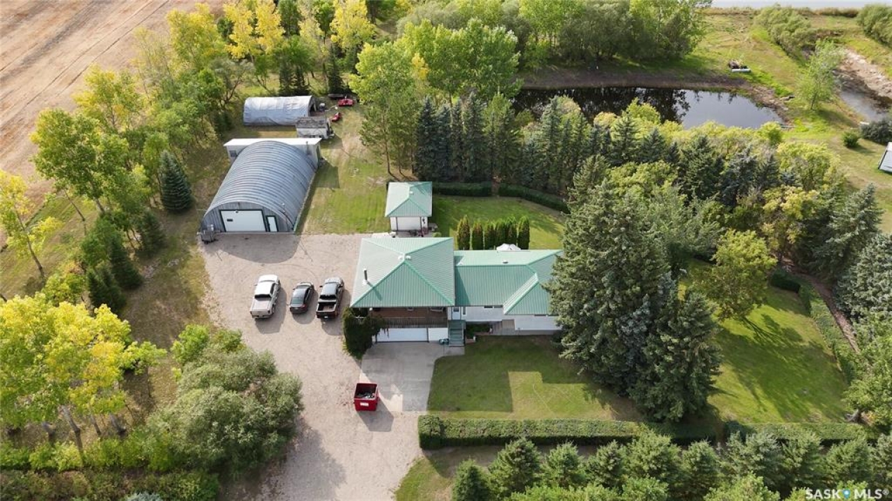 Welcome to your own private oasis just 5 minutes from Regina's southwest corner. This incredible 12.75-acre property combines the peace and privacy of acreage living with the convenience of city amenities — the best of both worlds. Originally built in 1960 and thoughtfully expanded in 1977, this spacious home offers plenty of room for family and entertaining. The addition includes a double attached garage with direct entry and a stunning living room above, creating a warm and inviting space to relax. Recent updates make this home move-in ready: • High-efficiency furnace • PVC windows • Durable tin roof • Modern vinyl plank flooring The finished, heated double garage is perfect for keeping vehicles warm in winter or doubling as a workshop. Step outside and enjoy everything this mature property with plenty of trees has to offer. Whether you're an outdoor enthusiast, hobby farmer, or nature lover, this land has something for everyone: • Orchard with Saskatoons, cherries, sea buckthorn, and buffalo berry • Three ponds, including the largest in the area — approx. 66,000 cubic meters and nearly 40 feet deep • Smaller ponds connected by a culvert system, fed from the main pond, rain, or spring runoff • 50' x 38' Quonset with a 10-foot heated woodworking shop • Single detached garage (14' x 22') • 80-foot well for reliable water • Septic system with an additional lagoon This property is truly one of a kind — a private, serene escape just minutes from the city. Imagine summer evenings by the pond, picking fruit from your own orchard, and enjoying space and freedom while still being close to schools, shopping, and everything Regina has to offer. Whether you're looking for a quiet retreat, a place to grow your hobbies, or an outdoor playground for the whole family, this acreage delivers it all. This is more than a home — it's a lifestyle. Don't miss your chance to make this 12.75-acre paradise yours.