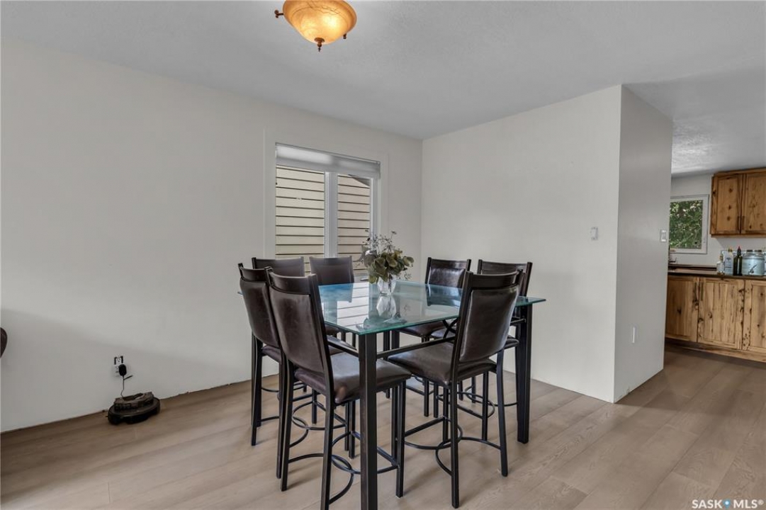 Welcome to this fantastic 1500 sq. ft. family home in highly desirable University Park, featuring many nice updates throughout. The main level is bright and inviting, boasting a very open concept layout ideal for modern family living and entertaining. Gleaming white oak hardwood floors flow throughout this space, connecting seamlessly with the beautifully updated kitchen, which serves as the heart of the home. Upstairs, you will find two spacious bedrooms and a primary suite that features a massive walk-in closet. This versatile space was originally a third bedroom and can easily be converted back, creating a functional three-bedroom-up layout if desired. The fully developed basement nearly doubles your living space, offering two additional large bedrooms, a recreation area, and a stunning, completely renovated bathroom with a custom tile shower and durable slate flooring. Enjoy the convenience of a double attached garage, complete with a 220v plug. The exterior includes a large yard and deck, ideal for enjoying our Saskatchewan summers. Situated on a quiet street, this home is just steps away from two great schools and offers quick access to all east end amenities.