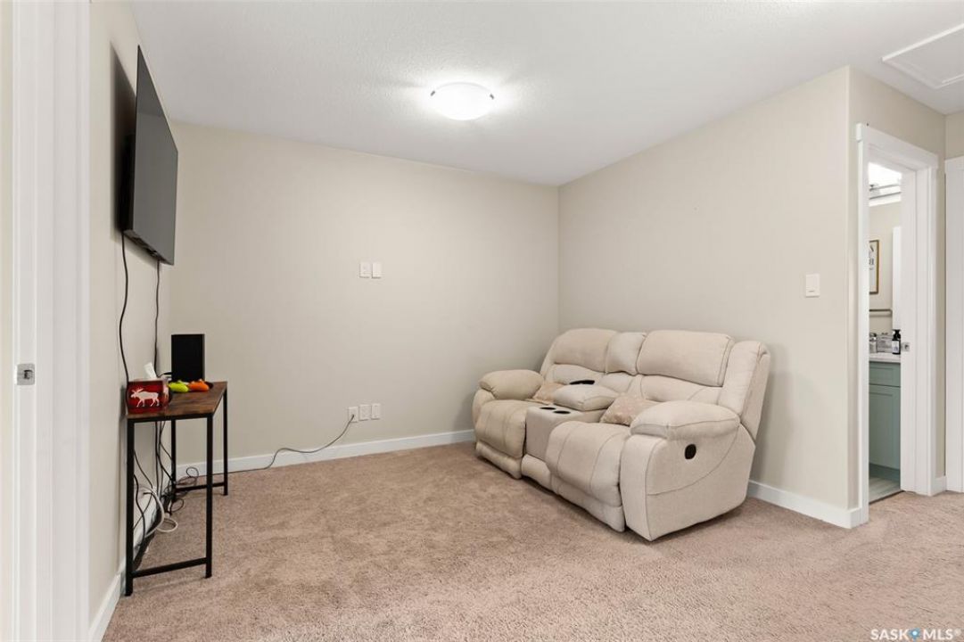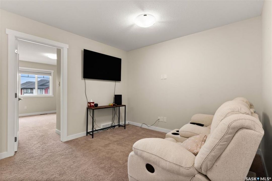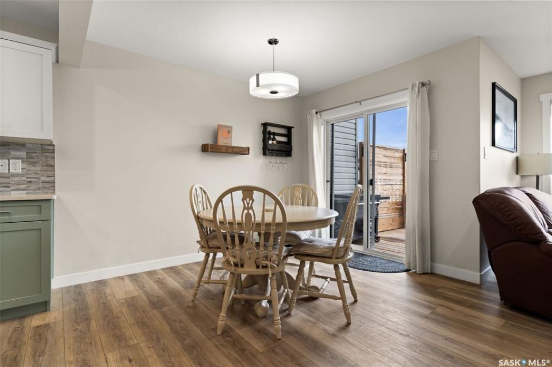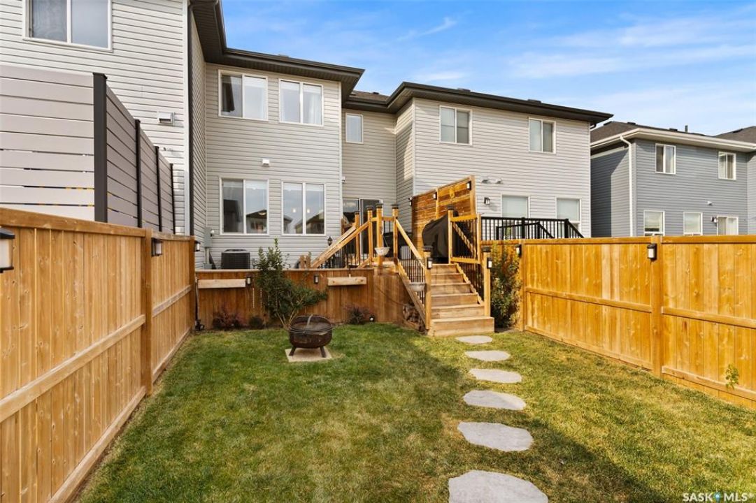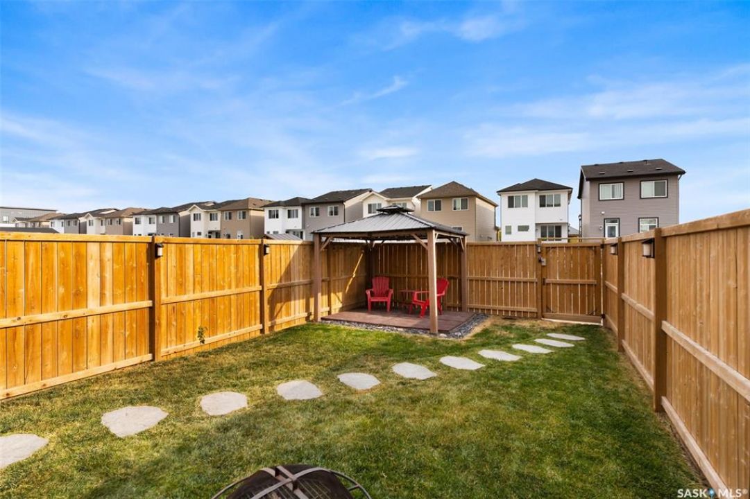 Welcome to 4705 Mutrie Crescent E, a beautifully finished multi-level townhouse in the growing community of The Towns, Regina. Built in 2021, this home offers 1,428 sq. ft. of stylish living space designed for comfort and functionality. Step inside to a bright, open-concept main floor featuring vinyl plank flooring, recessed lighting, and large windows that flood the space with natural light. The inviting living room flows seamlessly into the dining area and a modern kitchen complete with quartz countertops, tile backsplash, stainless steel appliances, two-tone cabinetry, and a large island with seating — perfect for casual meals or entertaining. A convenient 2-piece bath completes this level. Upstairs, you'll find a spacious bonus room, a well-equipped laundry area, and three comfortable bedrooms. The primary suite includes a walk-in closet and private 4-piece ensuite, while two additional bedrooms share another full bath. Plush carpeting adds warmth and comfort throughout the second level. The lower level is open for future development, offering plenty of potential to create a rec room, home gym, or guest space. Outside, enjoy a fully fenced and landscaped backyard with the deck featuring a privacy wall for added comfort, with a private gazebo — perfect for summer evenings. The single attached garage and driveway provide secure parking and extra storage. With its modern design, low-maintenance lifestyle, and prime location near schools, parks, and east-end amenities, this home is ideal for families, professionals, or downsizers. Don't miss out, 4705 Mutrie Crescent E is waiting for you!