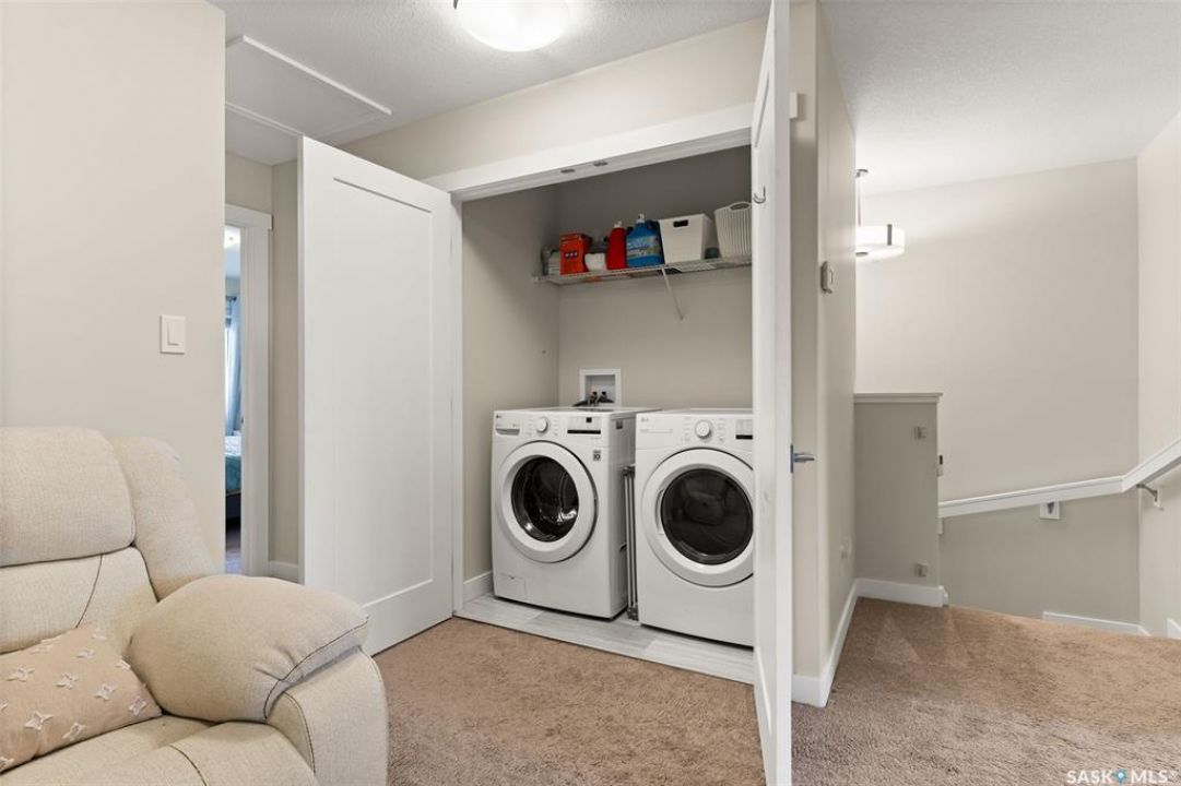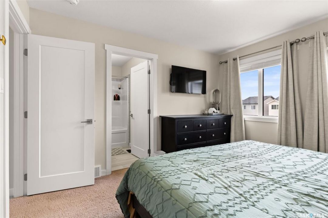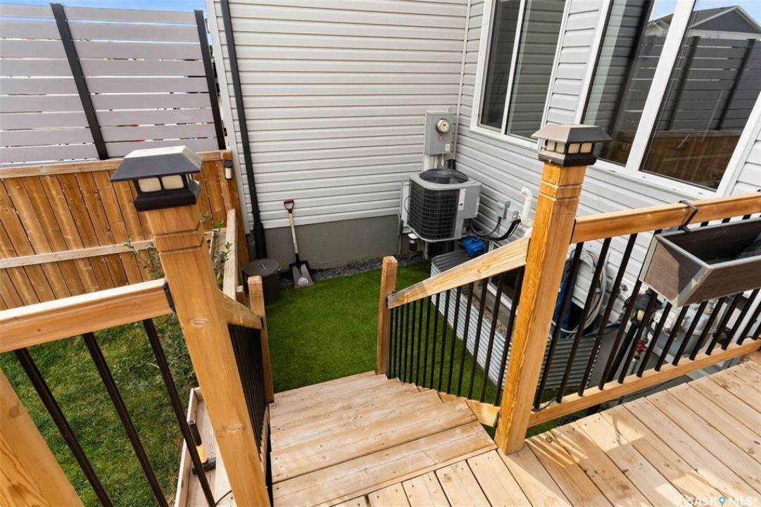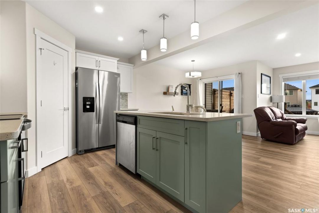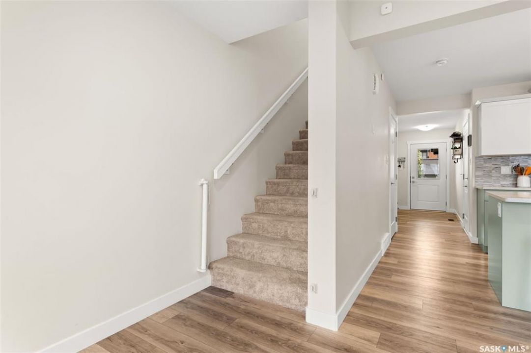 Welcome to 4705 Mutrie Crescent E, a beautifully finished multi-level townhouse in the growing community of The Towns, Regina. Built in 2021, this home offers 1,428 sq. ft. of stylish living space designed for comfort and functionality. Step inside to a bright, open-concept main floor featuring vinyl plank flooring, recessed lighting, and large windows that flood the space with natural light. The inviting living room flows seamlessly into the dining area and a modern kitchen complete with quartz countertops, tile backsplash, stainless steel appliances, two-tone cabinetry, and a large island with seating — perfect for casual meals or entertaining. A convenient 2-piece bath completes this level. Upstairs, you'll find a spacious bonus room, a well-equipped laundry area, and three comfortable bedrooms. The primary suite includes a walk-in closet and private 4-piece ensuite, while two additional bedrooms share another full bath. Plush carpeting adds warmth and comfort throughout the second level. The lower level is open for future development, offering plenty of potential to create a rec room, home gym, or guest space. Outside, enjoy a fully fenced and landscaped backyard with the deck featuring a privacy wall for added comfort, with a private gazebo — perfect for summer evenings. The single attached garage and driveway provide secure parking and extra storage. With its modern design, low-maintenance lifestyle, and prime location near schools, parks, and east-end amenities, this home is ideal for families, professionals, or downsizers. Don't miss out, 4705 Mutrie Crescent E is waiting for you!