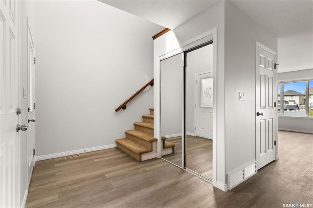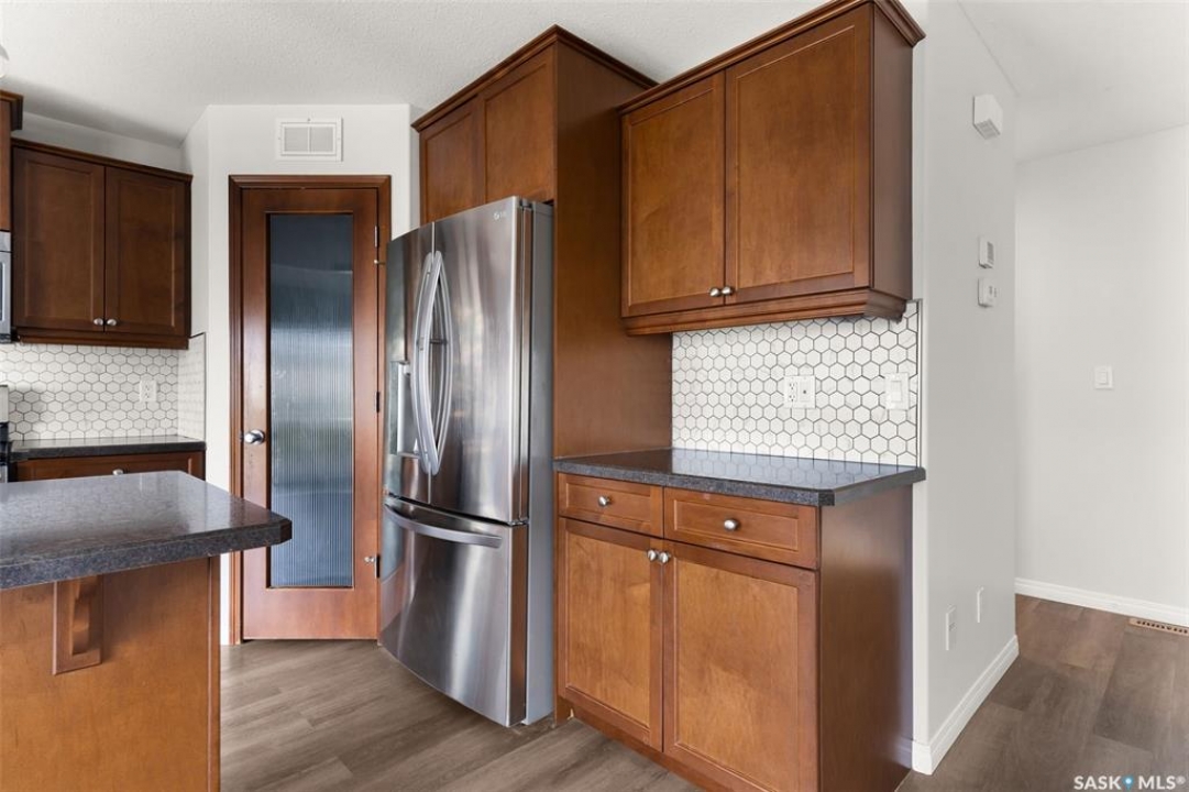 Welcome to 5436 Aerial Crescent, a modern two-storey in the heart of Harbour Landing—one of Regina's most vibrant and family-friendly neighbourhoods. Built in 2012, this 1,439 sq. ft. home impresses with its smart design, 4 bedrooms, 4 bathrooms, and a fully finished basement with separate entry. The main floor is bright and inviting, featuring a spacious living room with large picture windows, an open dining area with garden doors to the deck, and a stylish kitchen showcasing rich wood cabinetry, stainless steel appliances, tiled backsplash, and a walk-in pantry. A convenient powder room and main floor laundry complete this level with everyday functionality. Upstairs, the private primary suite boasts a walk-in closet and 4-piece ensuite, accompanied by two additional bedrooms and a full bath. The lower level expands your living space with a versatile rec room, a wet bar, a fourth bedroom, and a full bath—ideal for guests, teens, or potential suite options. Step outside to a fully fenced yard that backs onto expansive green space—perfect for kids, pets, and backyard gatherings. A spacious deck makes summer entertaining a breeze, while the double attached garage and exposed aggregate driveway add both curb appeal and extra parking. With central air, updated vinyl plank flooring, included appliances, and a location close to schools, parks, shopping, and all Harbour Landing amenities, this home checks all the boxes. Move-in ready and waiting for you to enjoy!
