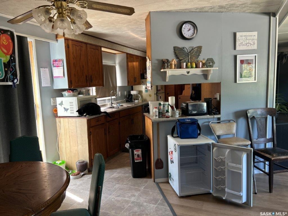 1588 sqft mobile home built in 1978 located on a 8125 sqft lot in Eatonia. Front entrance opens to a living room that opens to kitchen and dining room area. 2 bedrooms at one end of the mobile with a 4-piece bath, master bedroom has a 3-piece ensuite. Addition at the back of the mobile has a bedroom, games room and porch with storage. Features: 4 bedrooms, 2 bathrooms, good rental property with good renters. 16' x 20' deck, newer furnace, hot water tank is 1 year old and metal room. Shed is included. call to book your showing today!