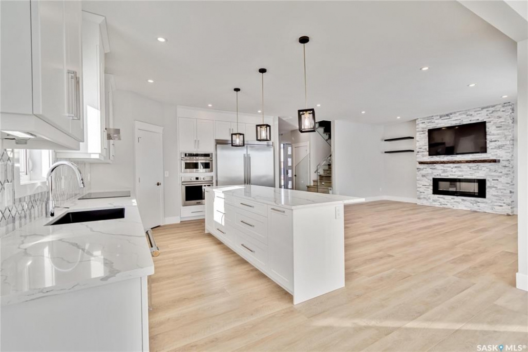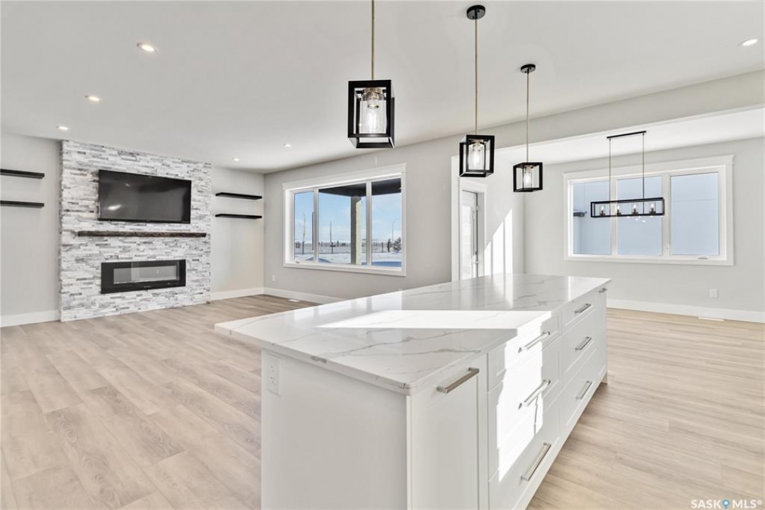 Large executive style fully developed home with views of park in Aspen Ridge. Walking up to this home you will notice the triple driveway and front landscaping to be included. Amazing bright and open two storey entrance greets you as you enter the home. Beautiful vinyl plank flooring throughout the open concept kitchen, living room with fireplace and dining room. Dream kitchen with plenty of cabinets, quartz countertops, built-in wall oven and microwave, range hood fan, and large side by side fridge / freezer. All kitchen appliances are included. The dining room leads to the deck! Open staircase leads to the second floor which includes 3 bedrooms, 4 piece bathroom, laundry room, and large bonus room. The vinyl plank continues through all bedrooms and bonus room here as well. Primary bedrooms feature a gorgeous en suite, with dual sinks, soaker tub and walk in tiled shower. Dream closet with plenty of built in shelving and storage. Fully developed basement, large family room, 4th bedroom, 4 piece bathroom and bar! This home comes complete with a 4 car attached garage and central air! Ready for immediate possession!