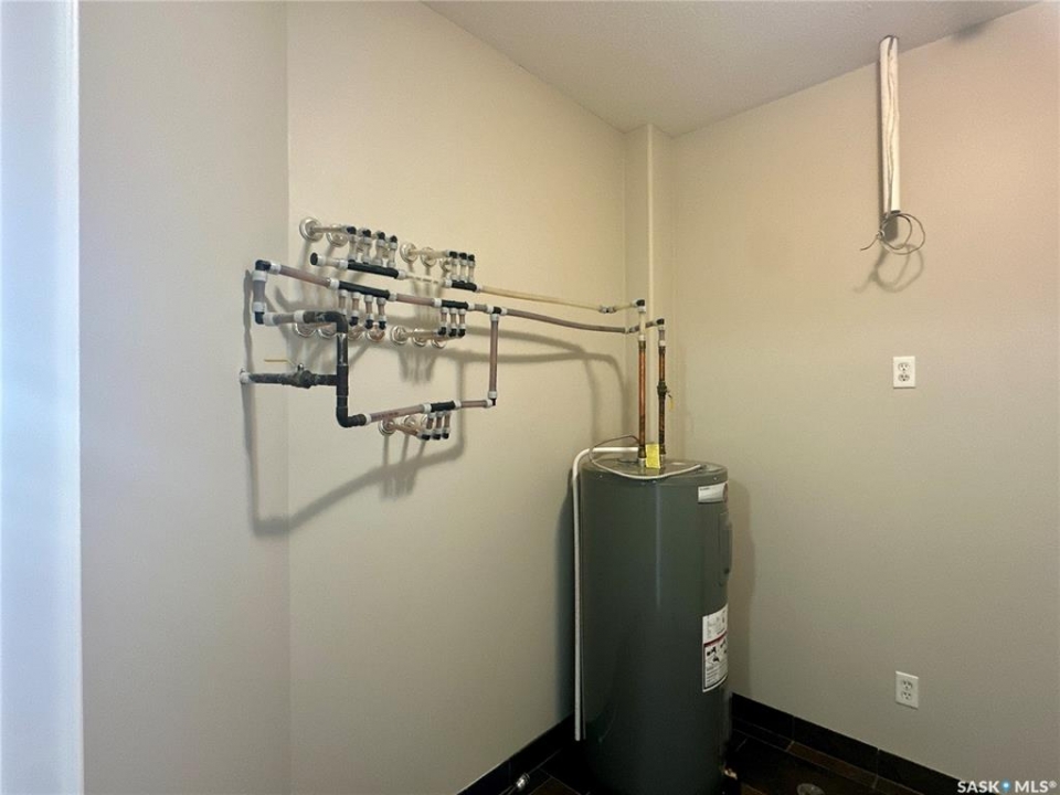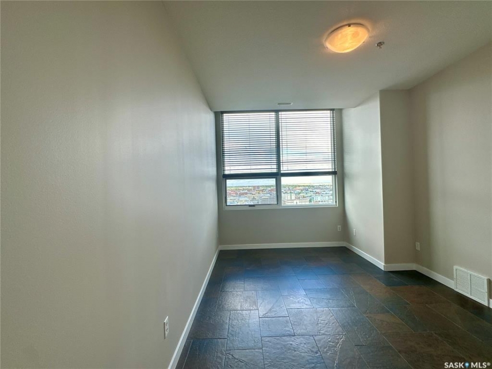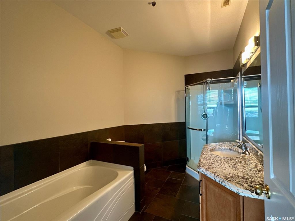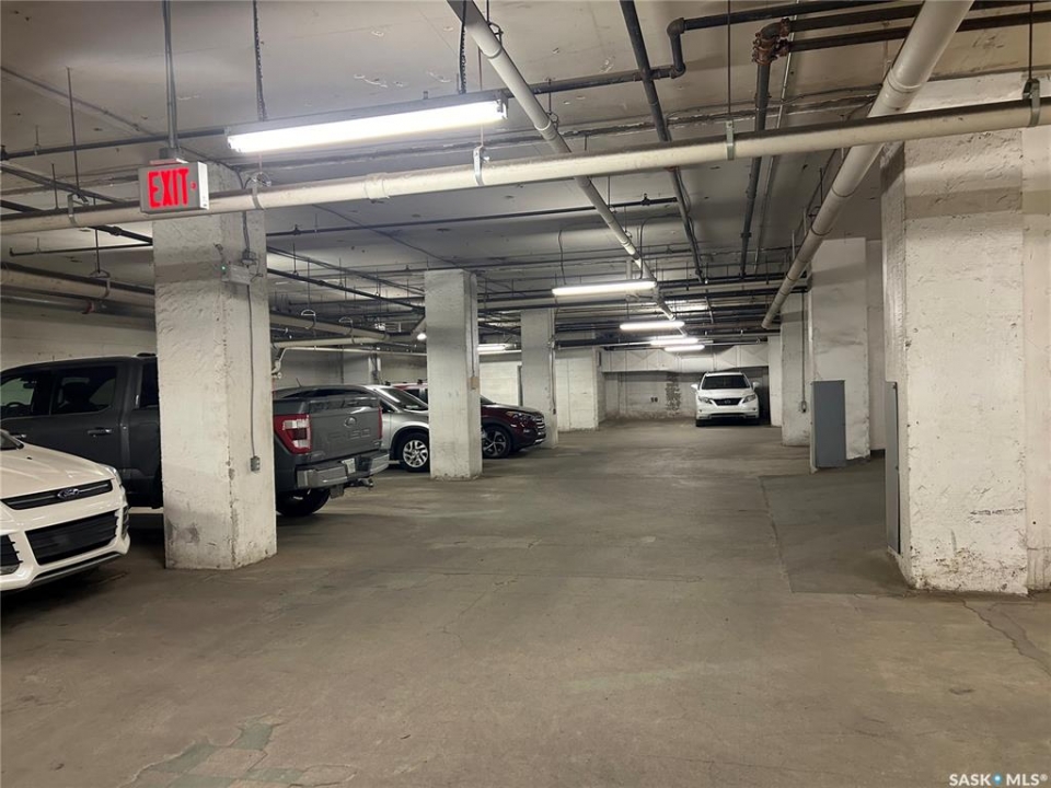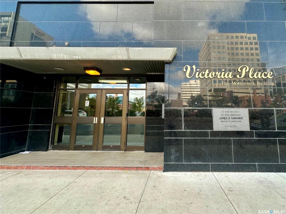 Discover this beautiful 2-bedroom, 2-bathroom condo on the 12th floor of Victoria Place, ideally located just steps away from Regina's vibrant downtown. With restaurants, shopping, and services all within walking distance, this prime location offers unparalleled convenience. This spacious condo features a modern kitchen with stylish finishes, counter seating, and a separate dining area. Large windows and 9' ceilings fill the living spaces and bedrooms with abundant natural light, creating a warm and inviting atmosphere. The primary bedroom is a private retreat, complete with a closet and an ensuite bath that includes both a separate tub and shower. The second bathroom has been upgraded with a granite countertop and offers a shower/tub combo for added comfort. A large storage room, along with an additional laundry area with extra storage, ensures you'll have all the space you need. Step out onto the east-facing balcony and take in the stunning city views. This unit includes one underground parking stall, and the condo fees cover building maintenance, reserve fund contributions, garbage removal, and water/sewer. Recently updated with new baseboards and a fresh coat of paint, this condo is move-in ready and waiting for its new owner! Schedule a viewing with your real estate agent today to experience this exceptional property firsthand!