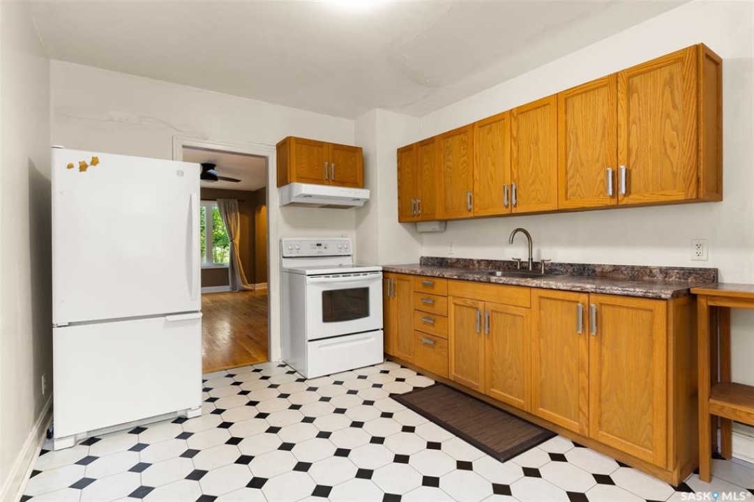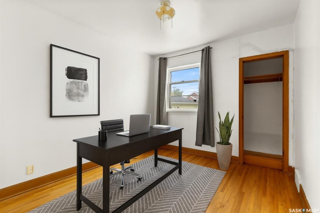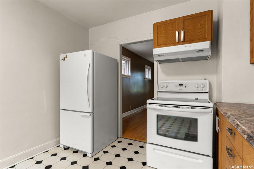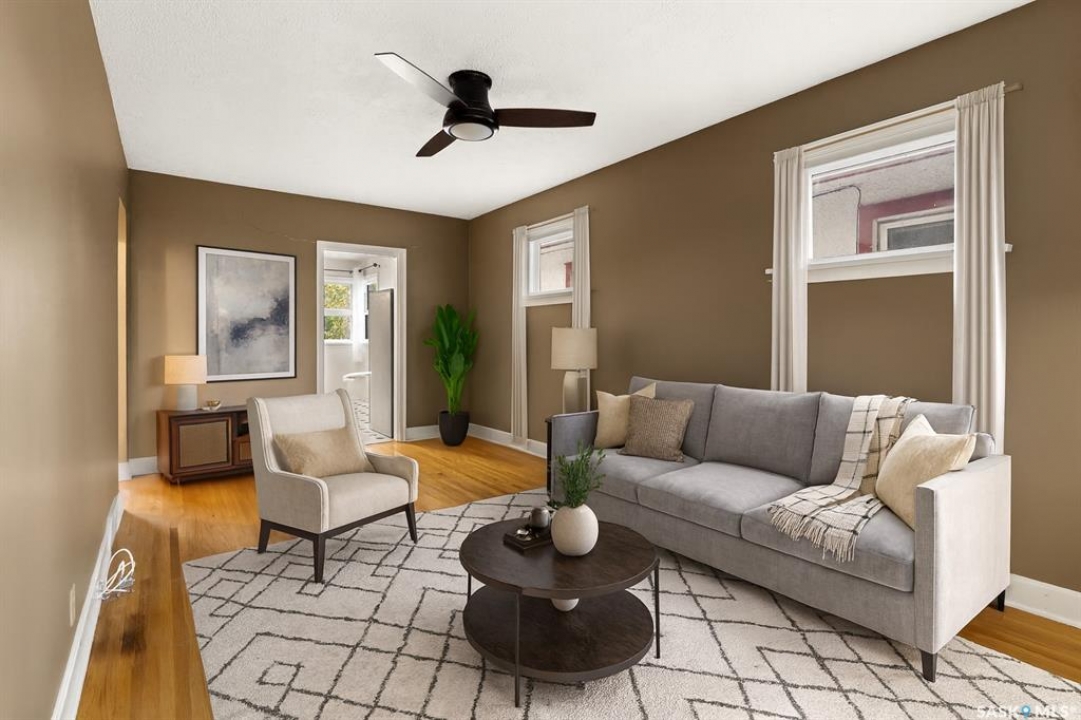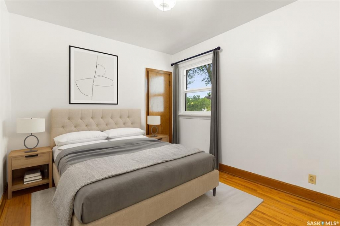 Welcome to 1835 Quebec Street! This charming 772 sq. ft. bungalow offers an affordable opportunity to own in Regina. The main floor features two bedrooms, a four-piece bathroom, and a good-sized living room with beautiful original hardwood flooring that adds character to the home. The eat-in kitchen provides ample space for family meals, complete with oak cabinetry, updated hardware, a large sink, and a hood fan over the stove. Enjoy the benefits of some updated PVC windows and an upgraded electrical panel for peace of mind. The basement adds excellent functionality with three versatile dens, recreation space and plenty of storage. Outside, you'll find a cozy backyard with room to relax, plus convenient off-alley parking. Appliances are included (fridge, stove, washer, and dryer), making this a move-in ready option. Close to downtown amenities! If you're looking for affordability, character, and function, this property is worth a look!
