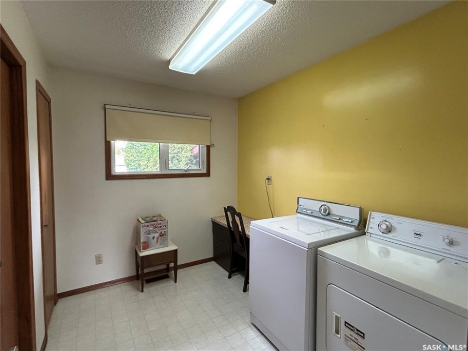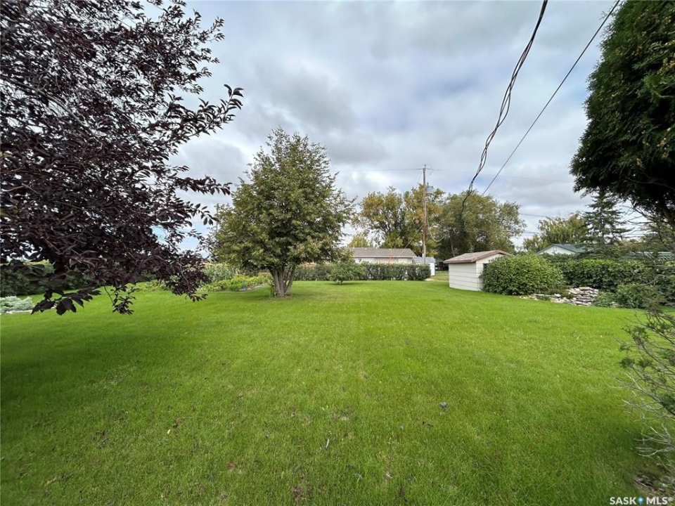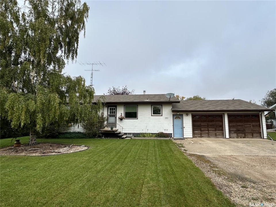 Welcome to 101 Phillips Street in Muenster! This property is located on a large corner lot (71ft x 132ft) offering beautiful curb appeal, a park like backyard, and well appointed bungalow with double attached garage. This home is sure to impress! As you enter, you are welcomed into the kitchen and dining area opening to the large living room. Large south facing windows flood this home with natural light. The main floor offers a spacious Primary Bedroom, second bedroom, full bath, and separate laundry room. The lower level of the home opens to a family room, two bedrooms (windows do not meet legal egress requirements), 3pc bath, storage room, and large utility room with stairs that access the garage. The bonus to this property is the double attached garage (insulated) with separate workshop area.....a necessity for anyone wanting to complete a few projects or store seasonal items. The backyard is a true paradise with an impeccably trimmed hedge, plenty of green space, a large garden, patio and storage shed....plus a plentiful apple tree. This home shows pride of ownership inside and out! Updates include air conditioning added 2024, shingles 2011, some main floor windows 2009 (dining and living room window are triple pane), eves 2006, exterior painted 2005.