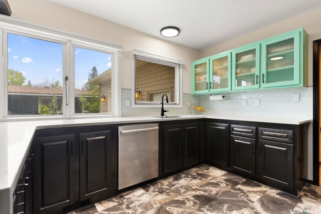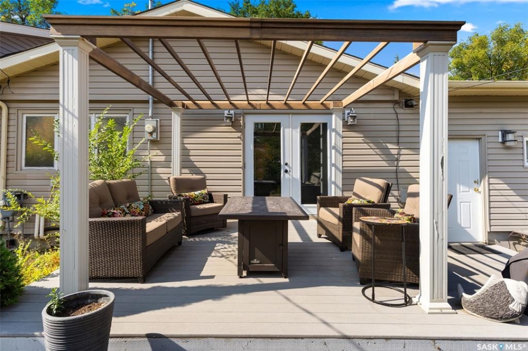 Welcome to a truly unique opportunity in the heart of South Regina. Tucked away on a quiet cul-de-sac overlooking green space, this home offers both privacy and convenience in a prime location. Originally designed as a single residence, the layout now provides a rare opportunity for families in need of an attached nanny suite or multi-generational living. The main home showcases stunning cathedral ceilings that create a bright and open feel, complimented by a series of thoughtful updates in recent years. The refreshed kitchen features stone counters with a waterfall edge, glass tile backsplash, updated flooring, and newer appliances. The primary bedroom is spacious and can double as an exercise space or reading nook. Here garden doors lead to a two-tiered composite deck with pergola and view of the east-facing backyard. Down the hall, a recently remodelled 3-piece bathroom with stylish shower and off the kitchen is access to an attached and heated (20'x26') garage. The fully finished basement adds to the living space with a 2nd bedroom, a den, 4-piece bathroom and laundry. Additional upgrades include modern lighting, a newer furnace, shingles and eaves all within the last 10 years. The second home offers more of the original 60's charm with its own private entrance. Here you will find a cozy space with a galley kitchen and an additional 3 bedrooms and 2 bathrooms. Paved walking paths right out your front door will take you to Kinsmen Park or watch your kids cross the street to school with the recently completed joint-use École St. Pius & Argyle Elementary Schools just a few steps away. Set on an impressive 100ft frontage (with 4 x 25ft lots), this property offers exceptional space and flexibility in one of the city's most desirable neighbourhoods. With its unique configuration, sought-after location, and blend of updates mixed with original charm this home presents an incredible opportunity you won't find anywhere else.