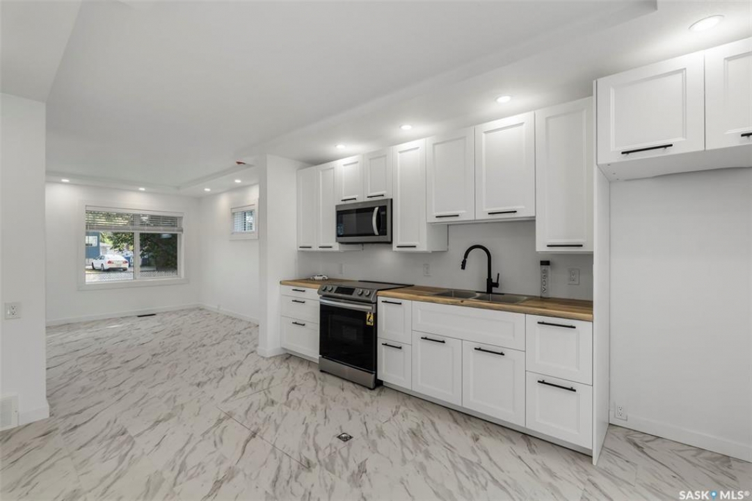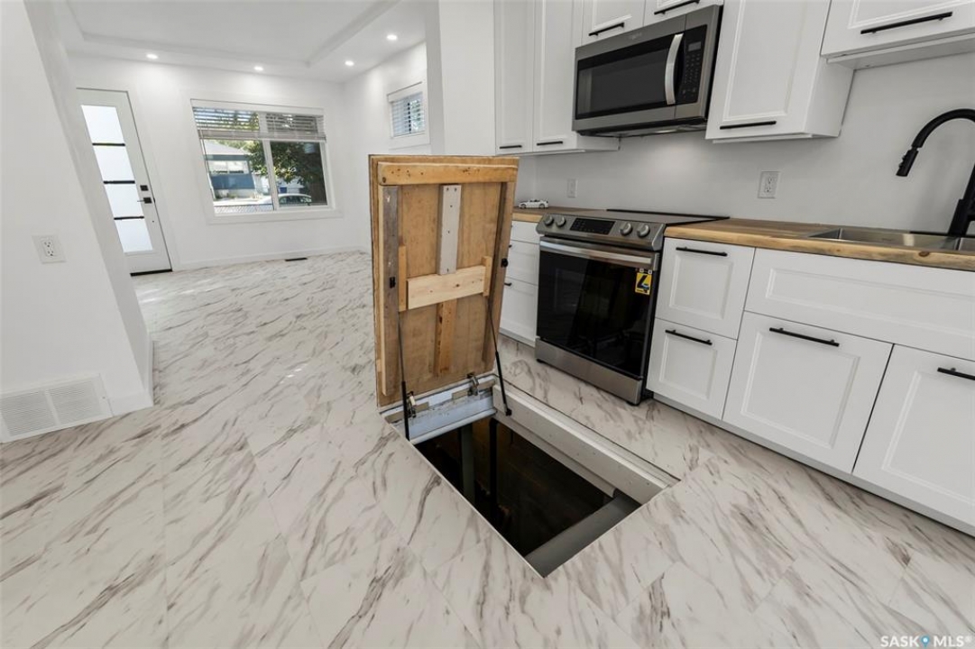 Fully renovated 3-bedroom bungalow on a massive 50x140 lot featuring raised ceilings, brand new kitchen with soft-close cabinets, new bathroom, triple-pane windows, newer high-efficiency furnace, new water tank, upgraded insulation, new plumbing, copper wiring with 100amp panel, new trusses/rafters/shingles, solid doors, quality blinds, large new washer & dryer, new range, pot lights, wireless thermostat, remote-control bathroom lighting, new exterior, and parking pad with electrical pole.