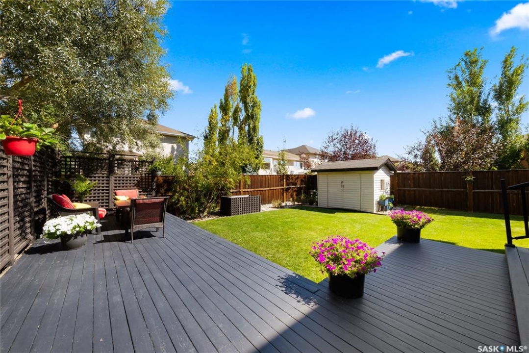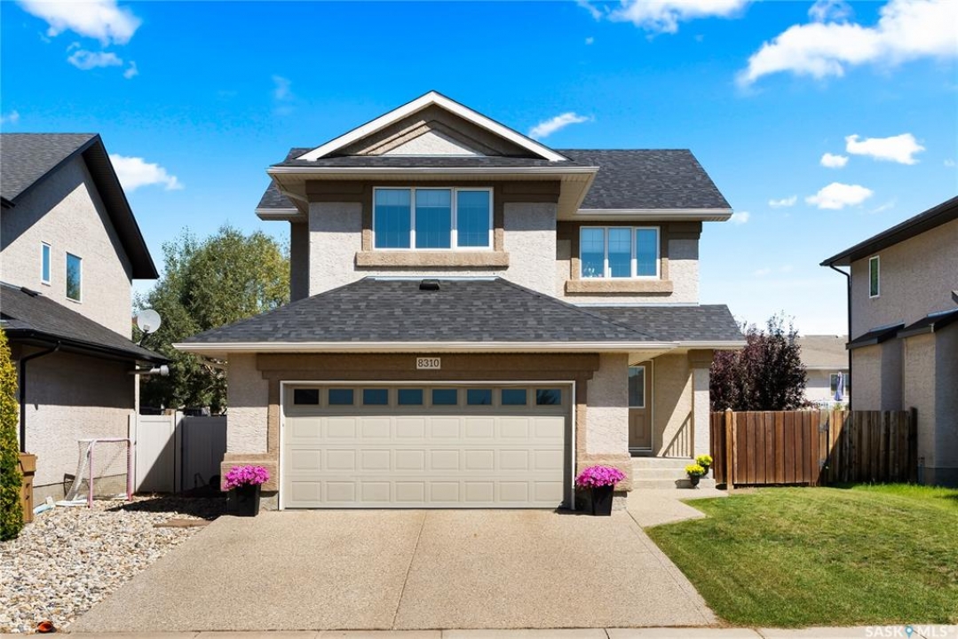Finally, the one you've been waiting for!Welcome to this wonderful family home - 8310 Wascana Gardens Way! This nearly 2,000 sq. ft. two-storey offers a thoughtful layout, beautiful updates, and a yard that's ready to enjoy. The spacious kitchen is the true centrepiece of the home, showcasing espresso maple cabinets, a large island, pantry, updated lighting and hardware, and stainless steel appliances. The inviting great room features a gas fireplace and hardwood flooring that flows seamlessly into the dining area. Garden doors lead to a large deck/patio area overlooking the fully landscaped, fenced yard. The main floor also offers a 2-piece guest bathroom, welcoming foyer and convenient access to the garage. Upstairs, you'll find a bright and versatile bonus room, a convenient laundry room, three generously sized bedrooms, and a 4-piece main bath. The primary retreat includes a walk-in closet and spa-like ensuite with jetted tub. The basement is open for customization to your liking! The home has seen some fresh new paint in neutral tones and boasts numerous upgrades, including: new microwave, new roof (April 2025), new A/C (September 2025), new HRV (September 2025), new blinds in bedrooms, two new windows, updated toilets, and slat board in the garage for smart storage. This property is truly move-in ready and a pleasure to show!