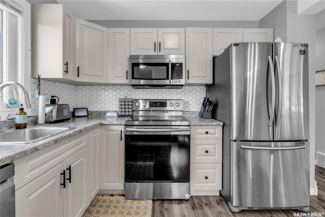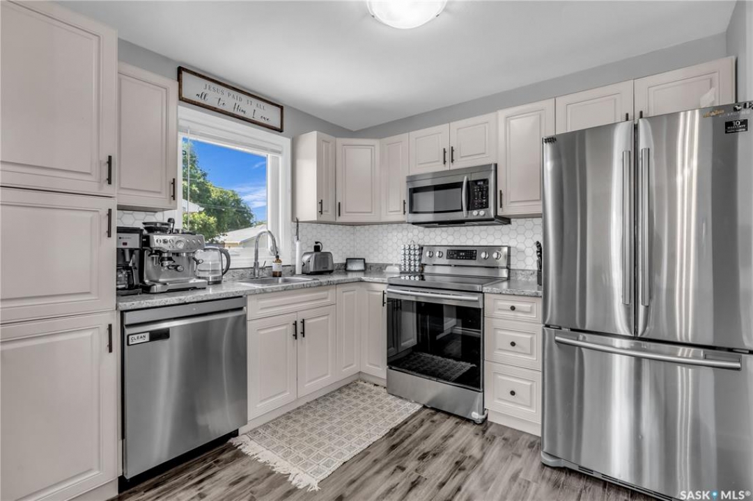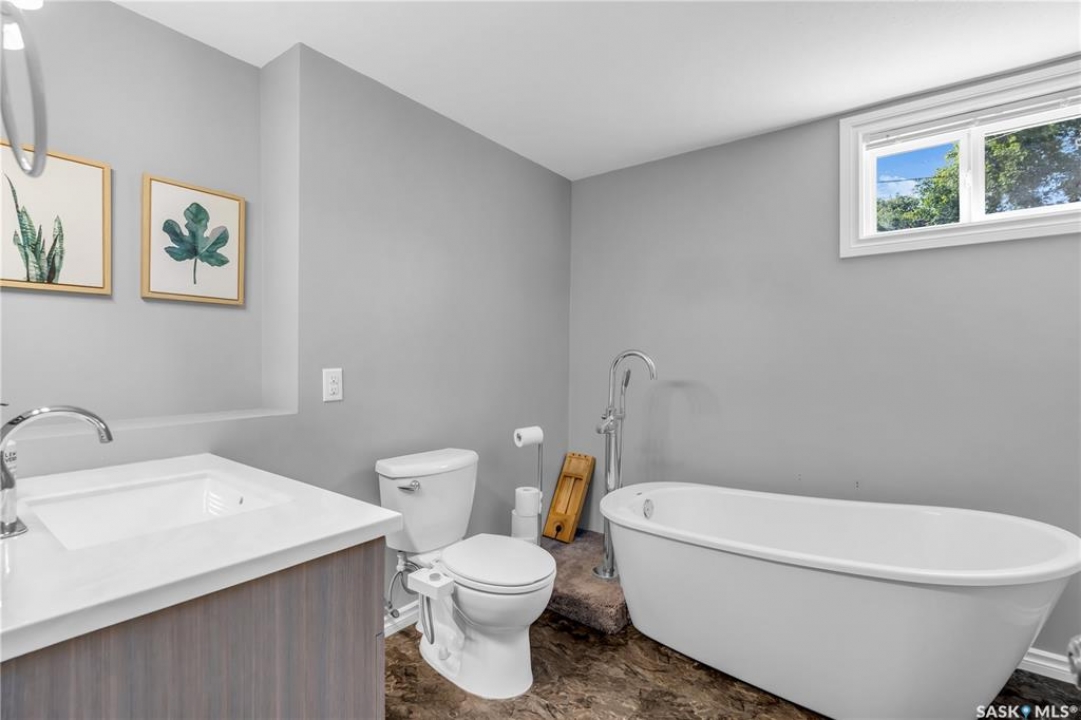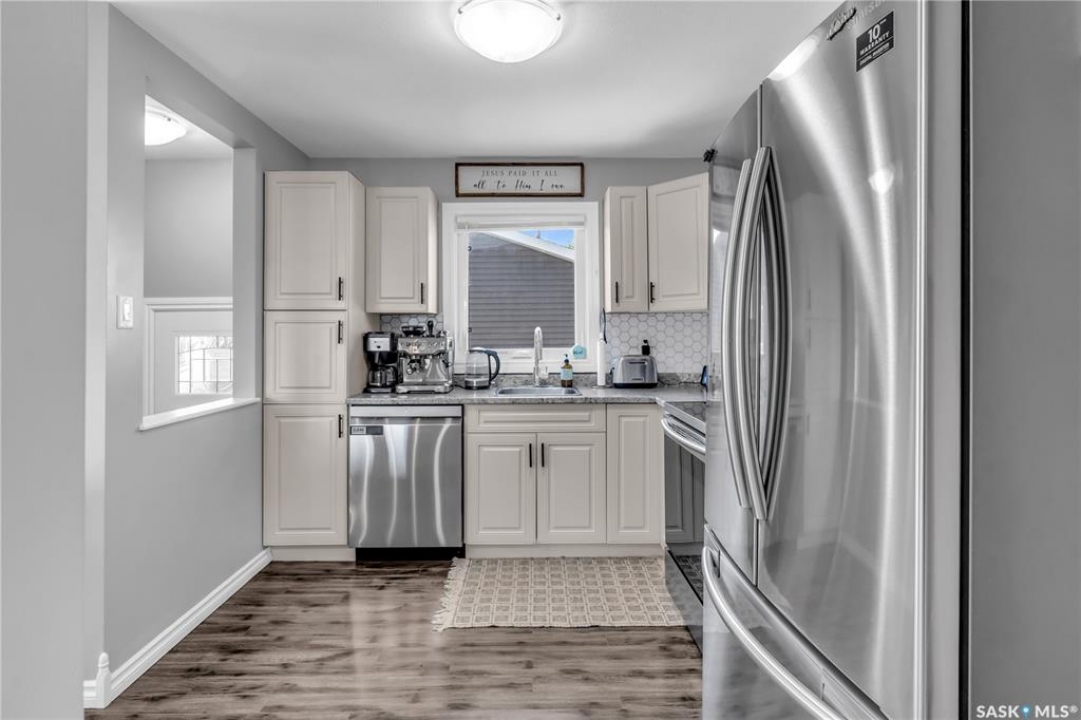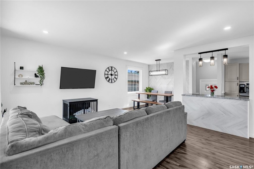 Looking for a fully renovated home in Palliser that is ready for you to move in and enjoy. Well, you just found it! Be sure to ask your agent to view the Pre-home inspection on this nicely updated Palliser bungalow. This home is complete with many recent updates: New shingles, PVC Windows, New HE Furnace, Brand New Water Heater (2024), and a newly built (2020), oversized heated and insulated garage (28x28 w/ 10ft ceilings). This is perfect for parking in Saskatchewan winters or if you like to tinker this could be your dream shop. The rest of the house is nicely updated. As you step inside, you're welcomed by a bright open-concept living space featuring newer flooring, a modern kitchen with island, pantry, and stainless steel appliances. Down the hallway are three bedrooms and a refreshed main bathroom with molded quartz countertops. This bathroom has lots of storage with a storage tower and vanity. The lower level has been fully finished and offers a large family room, games area, bedroom, and a large bathroom with a free-standing soaker tub and vanity. Outside, the updates continue with new siding, exterior doors, windows, roof, shed, landscaping touches, a fully fenced yard, and underground sprinklers in the front and back. Located within walking distance to elementary schools, parks, and trails, this Palliser bungalow has everything done — just move in and enjoy.