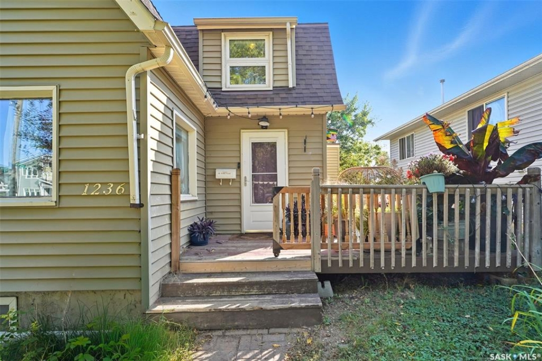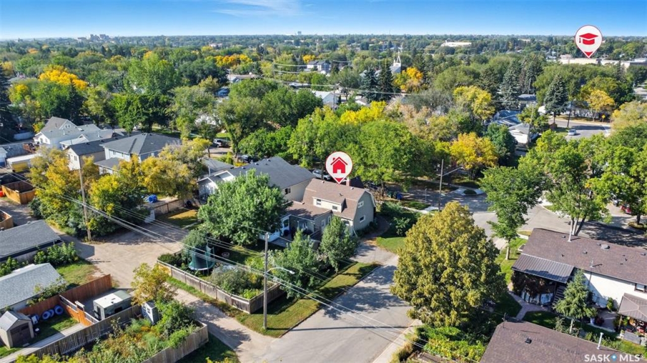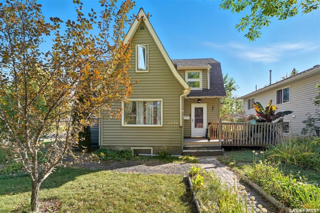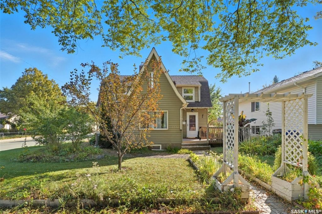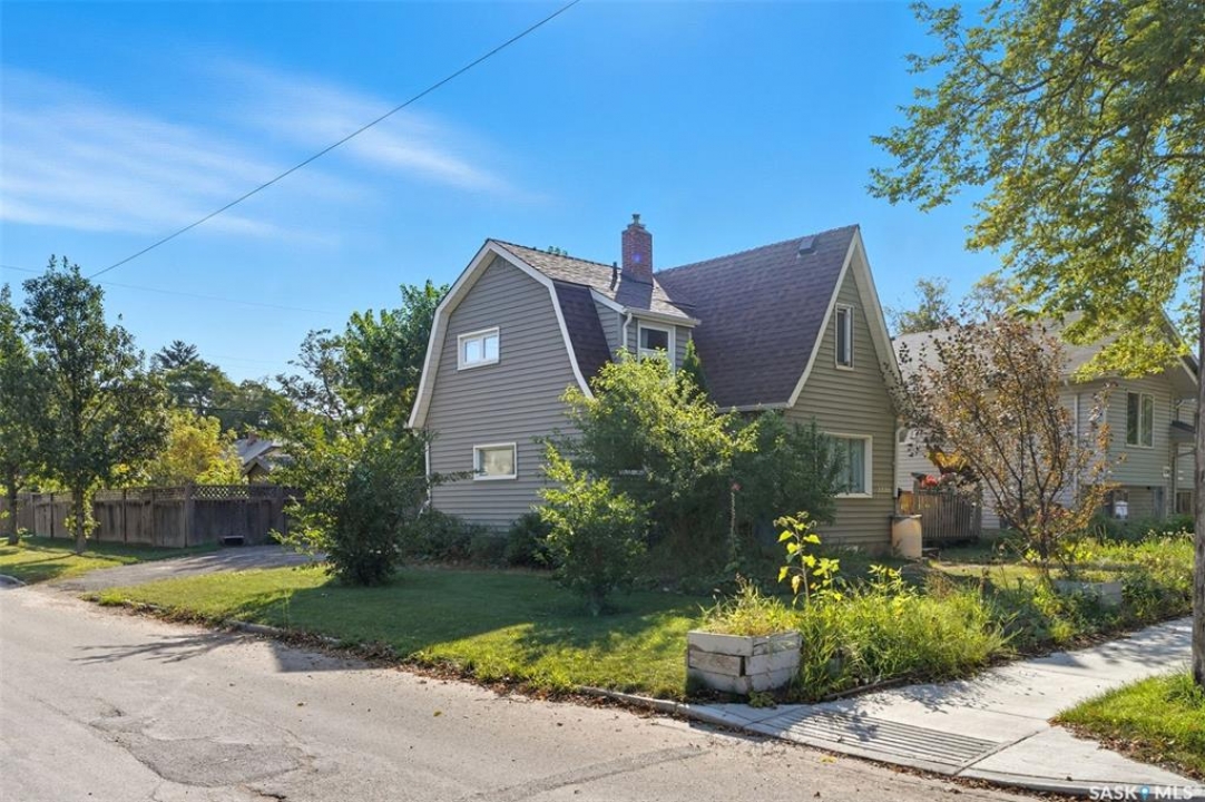 Located on a quiet corner in the mature Mayfair neighbourhood, this bright and well-maintained 1,500 sq. ft. two-storey home offers charm, comfort, and plenty of space inside and out. The open main floor features an inviting layout with additional updated living space off the kitchen, perfect for both everyday living and entertaining. Upstairs you'll find three bedrooms, a den, and a full bathroom, while the full-height, drywalled basement provides great potential for future development. The fenced yard is truly a gardener's paradise. The front yard is beautifully landscaped with perennials such as peonies, lilies, irises, sedums, and roses, accented by a Walker's weeping caragana, purple leaf plum tree, and fruit bushes. In the backyard, enjoy four garden beds, an apple tree, raspberries, Saskatoon and haskap bushes, and a silver maple, all sheltered on the north side by two mature oak trees. Additional updates include a newer water heater and central air conditioning. Just steps from schools, parks, transit, and amenities, this home combines urban convenience with natural beauty—ready for its next owner to enjoy.