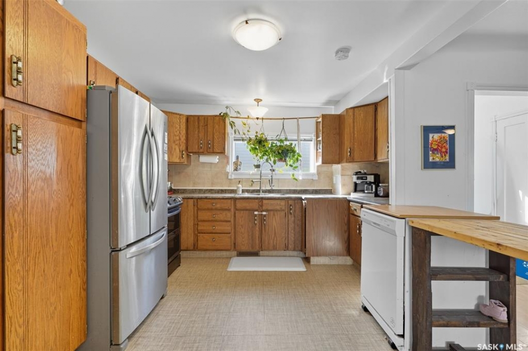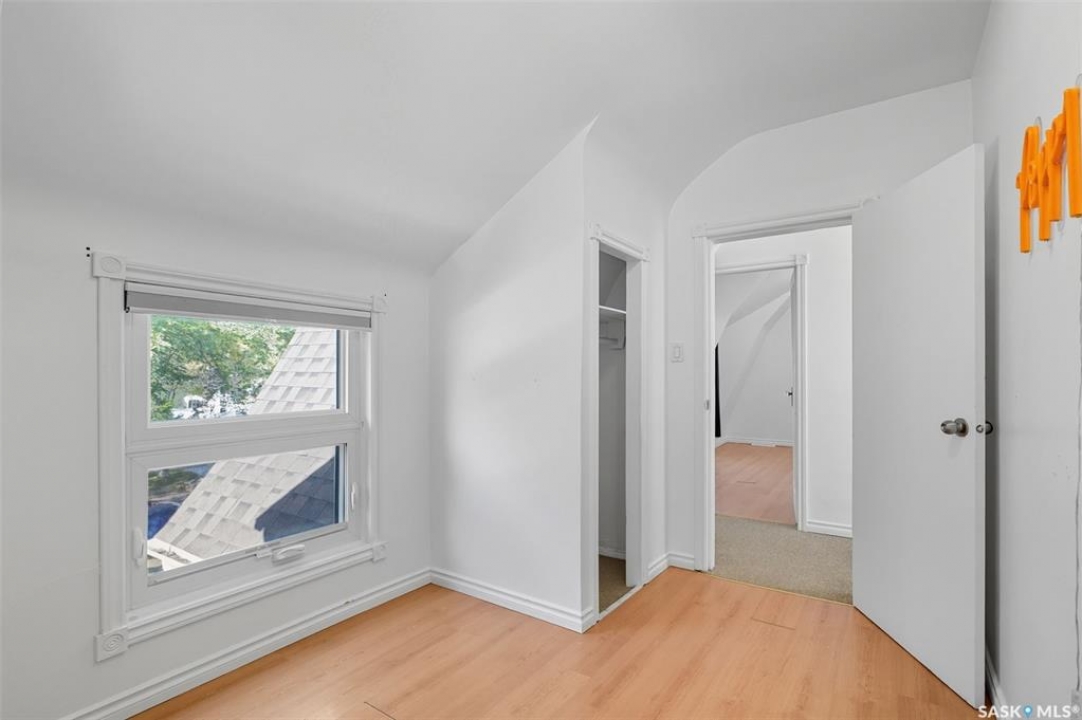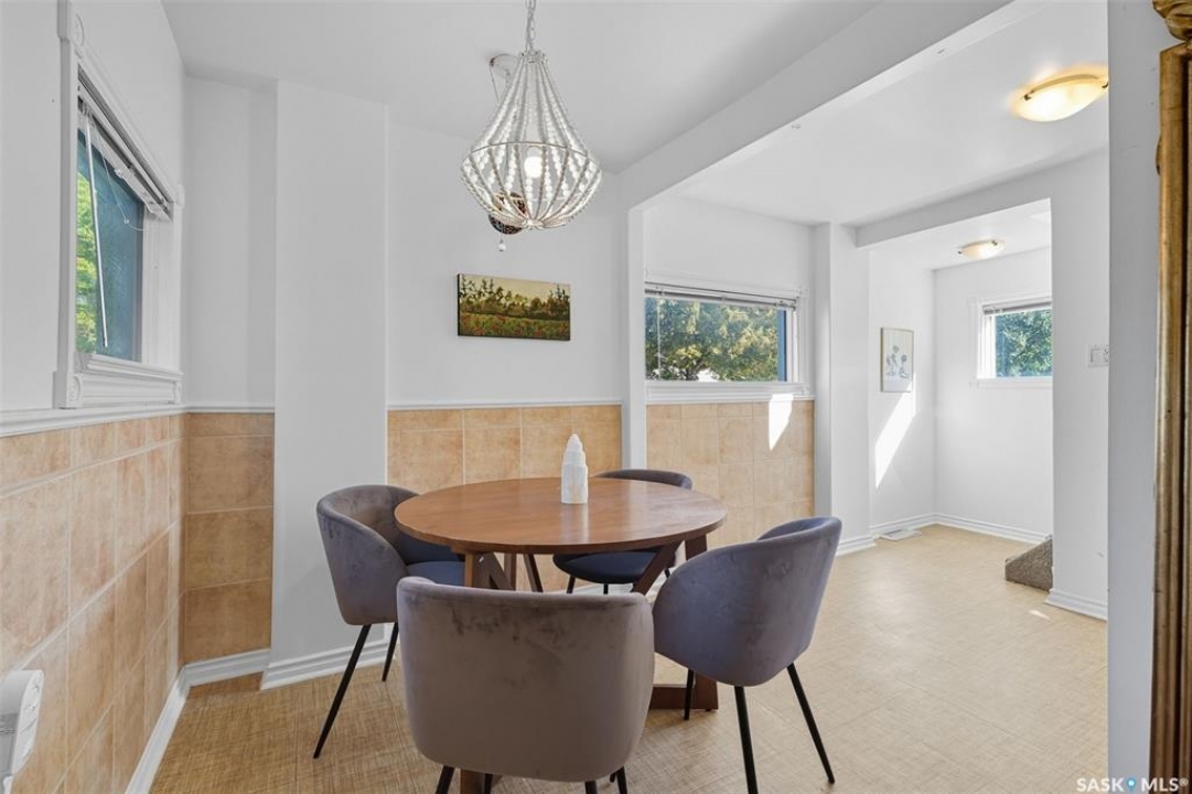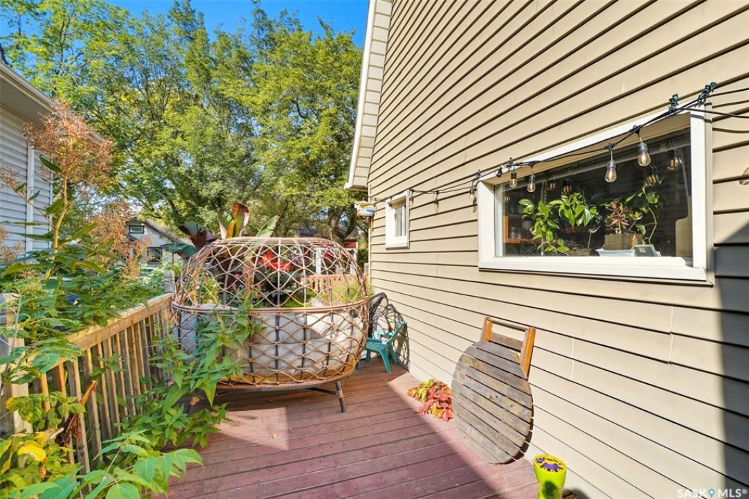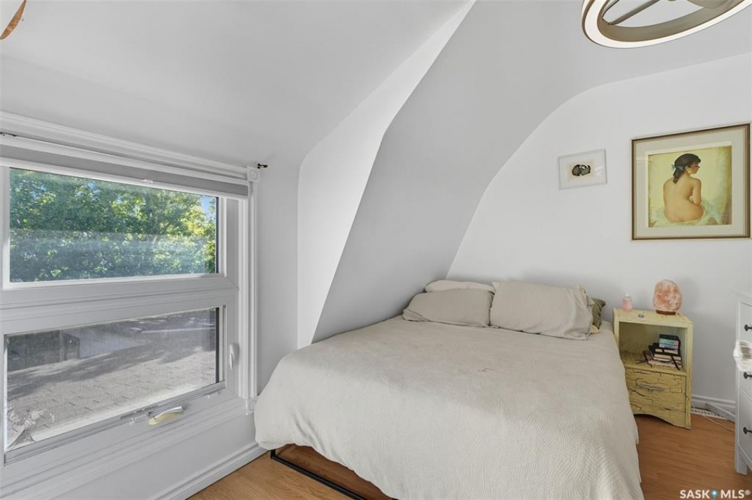 Located on a quiet corner in the mature Mayfair neighbourhood, this bright and well-maintained 1,500 sq. ft. two-storey home offers charm, comfort, and plenty of space inside and out. The open main floor features an inviting layout with additional updated living space off the kitchen, perfect for both everyday living and entertaining. Upstairs you'll find three bedrooms, a den, and a full bathroom, while the full-height, drywalled basement provides great potential for future development. The fenced yard is truly a gardener's paradise. The front yard is beautifully landscaped with perennials such as peonies, lilies, irises, sedums, and roses, accented by a Walker's weeping caragana, purple leaf plum tree, and fruit bushes. In the backyard, enjoy four garden beds, an apple tree, raspberries, Saskatoon and haskap bushes, and a silver maple, all sheltered on the north side by two mature oak trees. Additional updates include a newer water heater and central air conditioning. Just steps from schools, parks, transit, and amenities, this home combines urban convenience with natural beauty—ready for its next owner to enjoy.