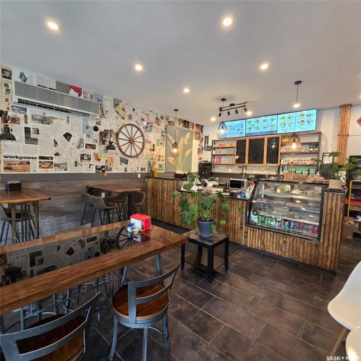 Welcome to this high-visibility corner unit commercial space—the well-known Chat Chat Coffee and Restaurant, now available for sale in one of Regina's busy and growing areas. Conveniently located close to downtown, this turnkey opportunity offers a fully equipped café and restaurant setup featuring a stylish dine-in area, professional kitchen with commercial-grade appliances, prep zones, office space, two washrooms, and storage throughout. The inviting atmosphere and central location make it an excellent spot for business meetings, casual dining, or coffee catch-ups. The unit also boasts large front-facing windows and is surrounded by residential density and foot traffic—ideal for entrepreneurs or investors ready to take over a thriving, ready-to-operate food business. Don't miss out on this exceptional commercial offering—book your viewing today!