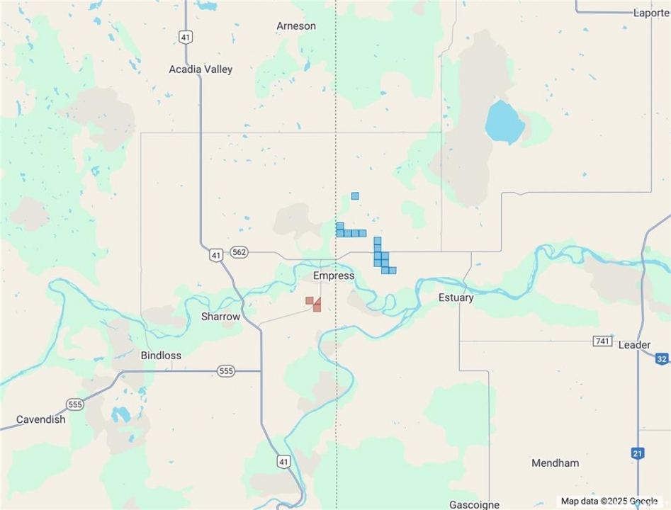 This package includes 17 quarters of grain land along the SK-AB border. There are 14 quarters located in Saskatchewan and 3 in Alberta. We have broken this land into two listings due to provincial regulations but both listings must sell together. MLS # SK019001 (listed at $7,850,000) must be sold together with MLS # A2254817 (listed at $850,000). Many of these fields are large multi quarter fields, making for ease of modern farming practices. The land has strong soil classifications and strong average assessed value. The soil is a mix of heavy clay, clay and clay loam. The SAMA stone rating is mostly “slight” or “none to few” and the SAMA topography rating is mostly “level to nearly level” and “gentle slopes”. Yard site in Saskatchewan with two Alcafab trailers and 40x80 shop. There is good all-season road access to the land.