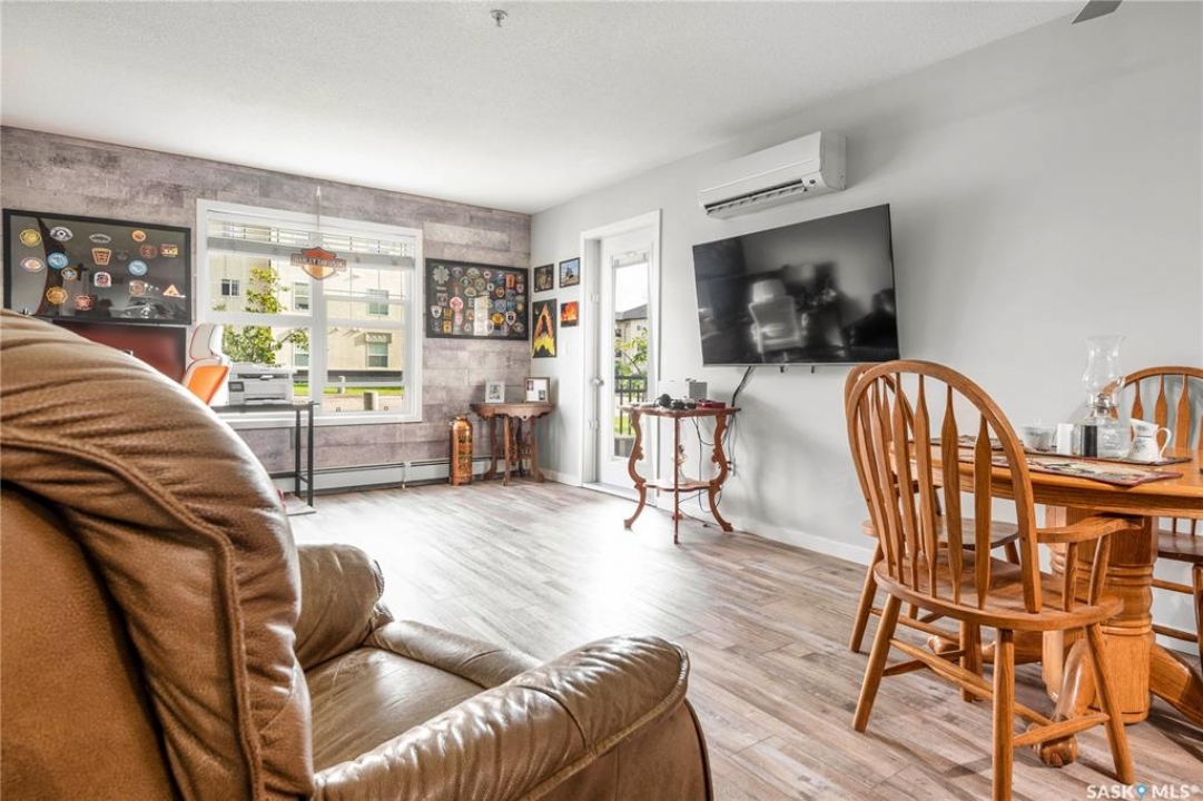 Welcome to Tuscana Condominiums in East Pointe Estates, Regina. Conveniently located near all of East Regina's shopping, dining, and amenities. This immaculate main-floor unit offers modern, open-concept living with a stylish kitchen featuring quartz countertops, tiled backsplash, and stainless steel appliances. Enjoy two spacious bedrooms, a 4-piece bath, in-suite laundry, and a private patio, plus two electrified parking stalls. Owners have access to a private clubhouse with an indoor pool, hot tub, gym, and lounge area. Condo fees cover heat, water, sewer, building insurance, maintenance, and more.