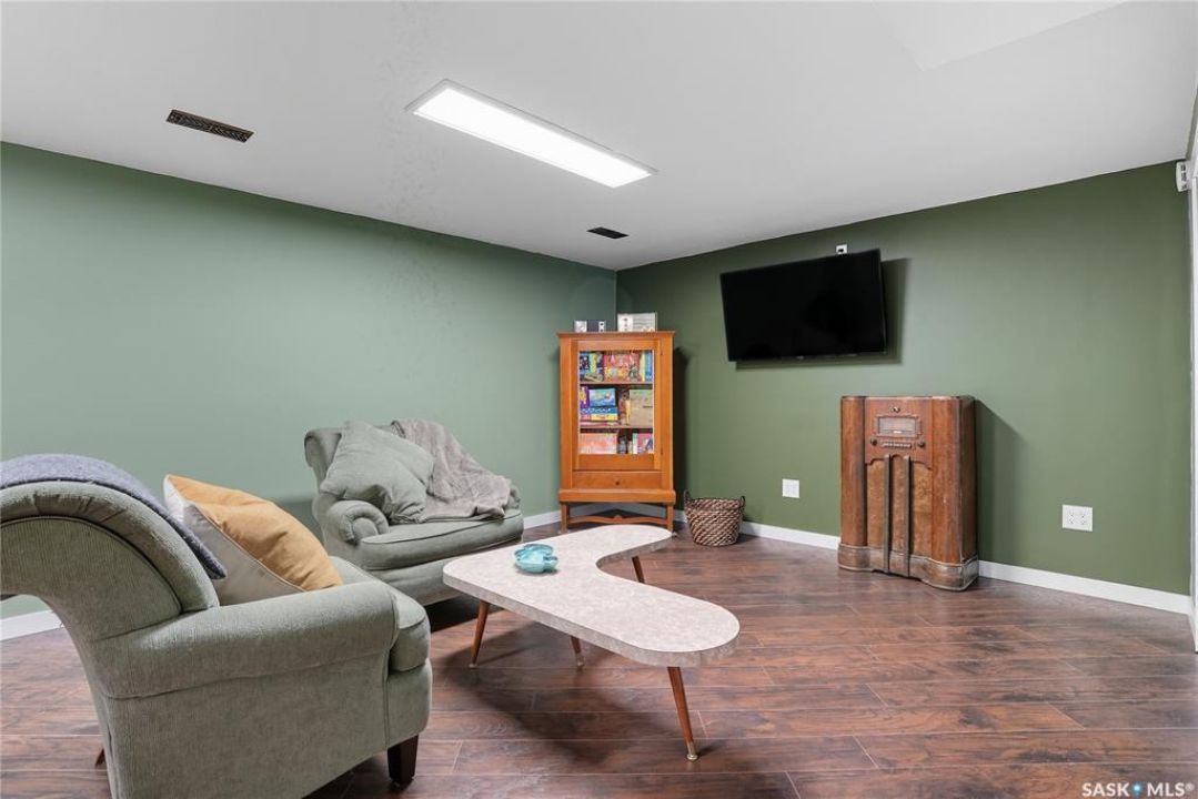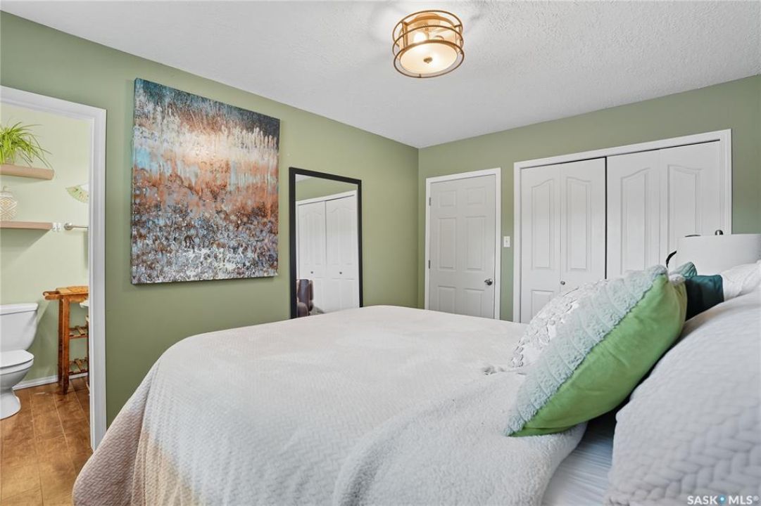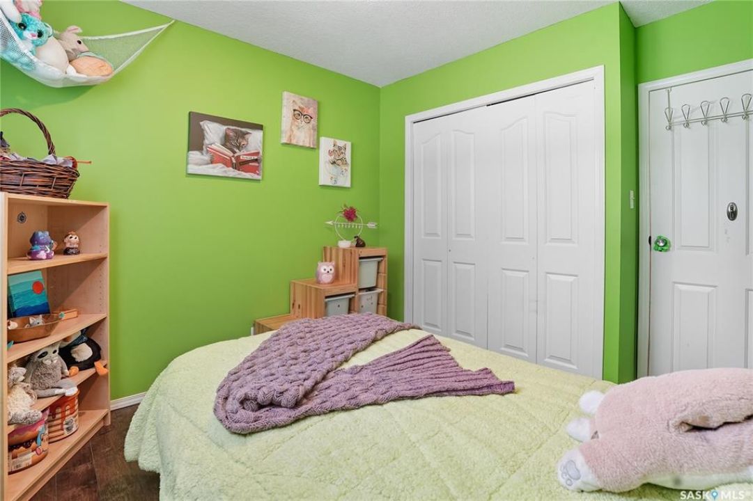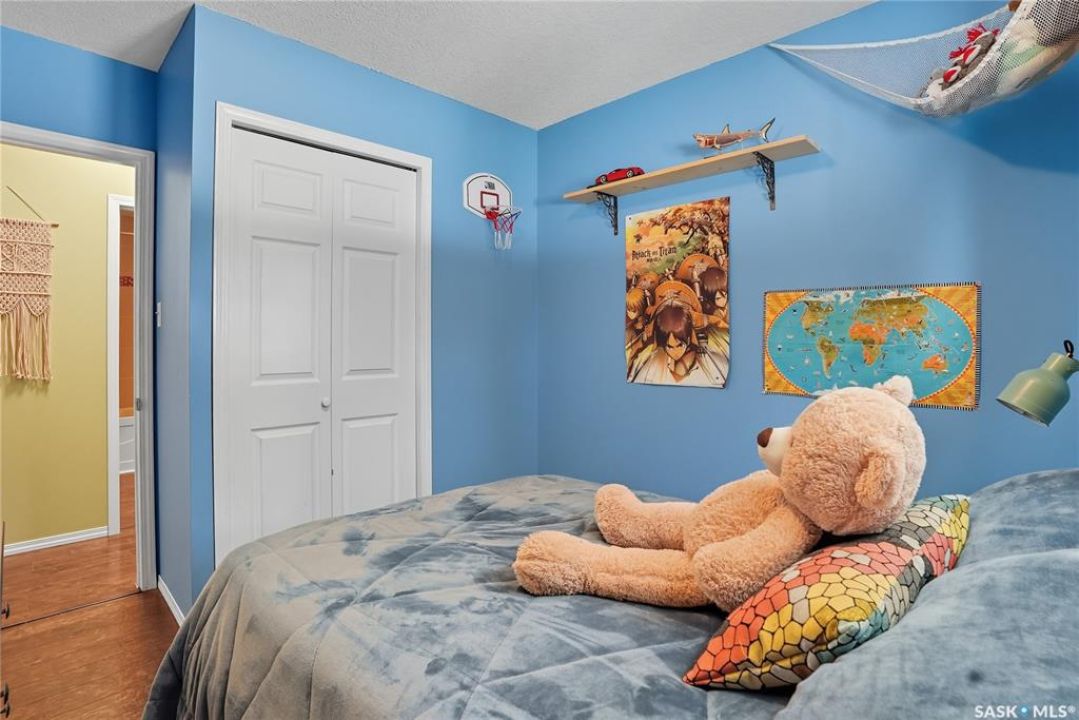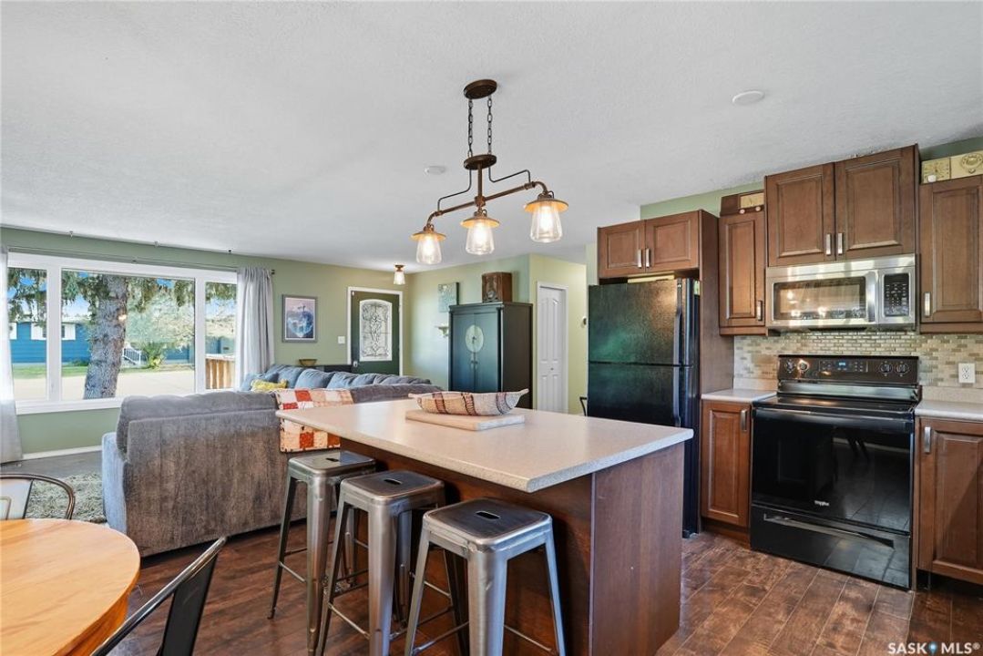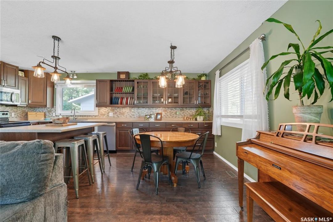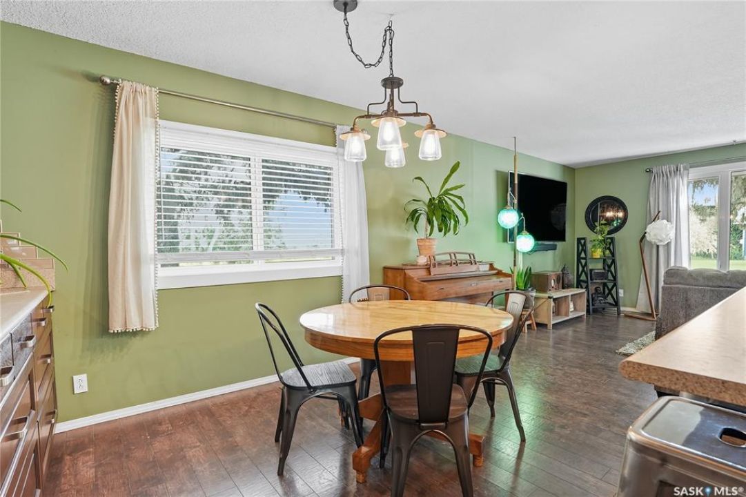 Welcome to small town living just minutes from Saskatoon & Martensville. This spacious bungalow is located on a sprawling corner lot, across the street from a park and around the corner from the edge of town. An open yet cozy floor plan greet you as you enter the home. The upgraded kitchen cabinets provide ample storage and plenty of counter space for the cooking & baking enthusiasts. Three bedrooms on the main floor includes a primary bedroom with an attached two piece ensuite and a seperate 4 piece bathroom to ound out the main floor. The updated basement includes a three piece bathroom, spacious family room perfect for movie nights and a nook that can accomodate a large desk for work from home space and large den that was being used as a bedroom. Outside, you will find a double garage attached by enclosed breezeway. This home features updated shingles, windows and siding as well. All of this sitting on a massive fully landscaped and fenced corner lot with mature trees and garden area. This home is oerfect for those looking for a bit more space, small town living but still close enough to the city of Saskatoon. Don't miss your chance to view this home, call your Realtor � today for a private showing!
