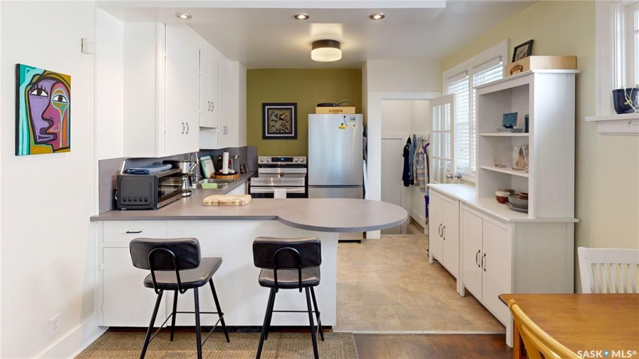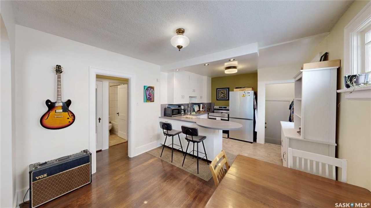 Welcome to 1040 Montague Street! This 1929 built bungalow has some original character and charm with some smart modernizations. The home is 796 square feet in size and has 2 bedrooms with room for future development in basement. It sits on a 25' x 125' rectangular lot that has rear lane, and is close to Sacred Heart School, Grassick Playground Park, and multiple bus routes. The front yard showcases a lawn and mature tree. The backyard is fully fenced with a tall privacy fence for tranquility and solitude. There are unique, towering trees, a patio for a table and chairs, a lawn area, raised garden boxes, an included storage shed and space at the back for keeping a vehicle as the back gate has large double doors. Inside the home, you're welcomed into a foyer area and into an inviting living room that has beautiful hardwood floors, several wall sconces, a fireplace feature and multiple bright windows. Adjacent to the living room is a dining area also with hardwood flooring that then connects to a kitchen that has a long countertop with bar seating and linoleum flooring. The fridge, stove and dishwasher here are all included. Next is the cute 4 piece bathroom with tiled tub surround and a patterned tile backsplash running behind the vanity and along the walls. Finishing off the main floor are two bedrooms that both have hardwood floors and closet space! Downstairs, the partially finished basement begins with the laundry area that includes the washer and dryer. There is ample storage space and even a workshop area down here. To the other side sits a sizeable recreation room area that could be made into additional bedroom space if required.