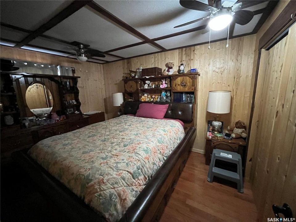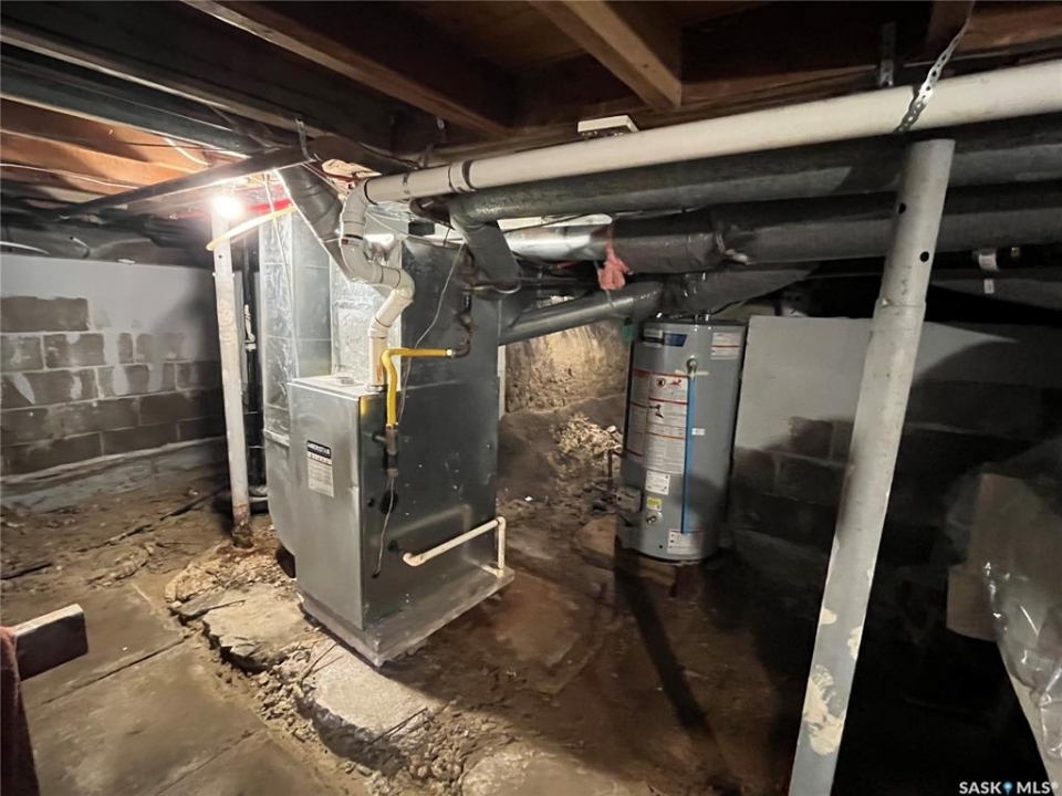 This house has plenty of upgrades from flooring, metal roof, siding, heater in garage, furnace and water heater to name a few. A nice little low maintenance house close to schools, parks, and more. This home maximized the square footage with a eat in kitchen with second bedroom, and laundry/3-piece bathroom off it leading to a good sized living room, with the primary bedroom off it. The second bedroom has a hatch to a partial basement that houses the High Efficient Furnace and Water Heater. Kitchen Appliances included. The yard is partially fenced and has a 1 car detached garage.