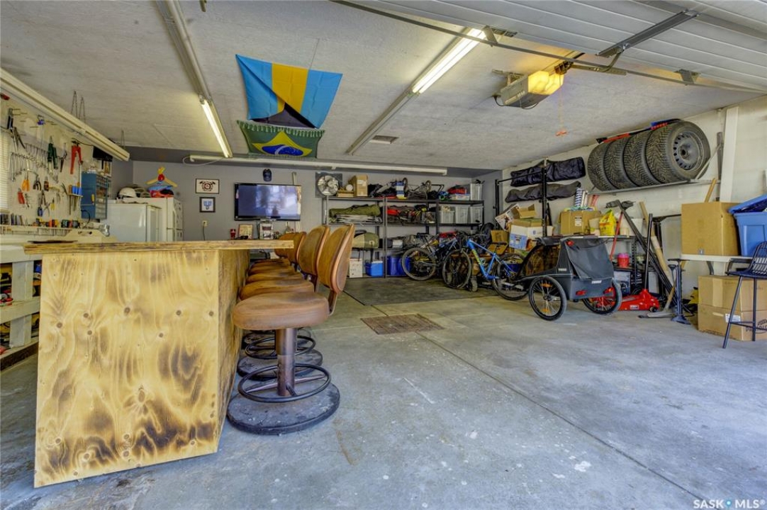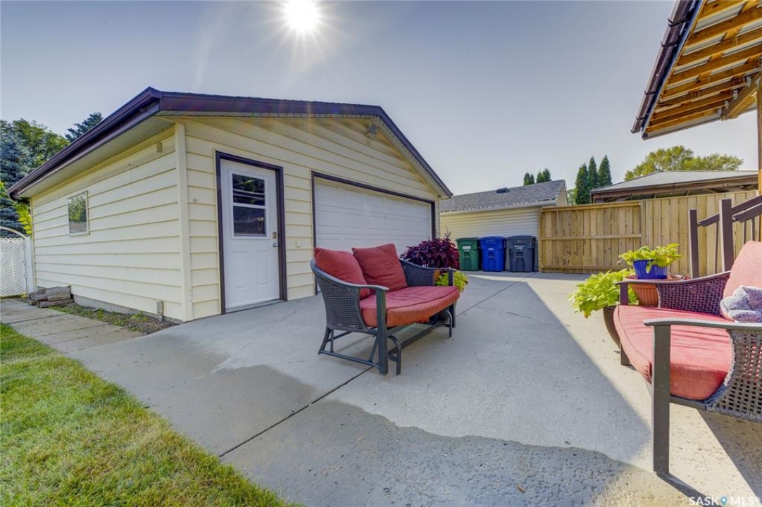 Beautifully Updated Bungalow in Richmond Heights! Nestled in the desirable, tree-lined community of Richmond Heights, this fully updated bungalow offers the perfect blend of modern comfort and convenience. Ideally located close to the river, downtown, the University of Saskatchewan, SaskPolytech, and with quick access to Circle Drive, this home is a rare find. Featuring 4 bedrooms and 2 bathrooms, the property includes a non-conforming 1-bedroom basement suite with its own laundry—ideal as a mortgage helper or for extended family. One of the upstairs bedrooms has been converted into a convenient laundry room, adding flexibility to the layout. The main floor boasts a stunning kitchen with quartz countertops, stainless steel appliances, and a stylish open feel accented by pine tongue-and-groove ceilings that flow through the living room, kitchen, and primary bedroom. The living room and primary Bedroom are finished with original hardwood floors, creating a warm and inviting space. Outside, you'll find plenty of parking with a driveway that accommodates 3 vehicles, plus a double detached garage featuring a floor drain, a work bench and built-in exhaust fan—perfect for hobbyists or those who appreciate a functional workspace. With every detail inside updated within the past five years, this home is move-in ready and located in one of Saskatoon's most sought-after areas.