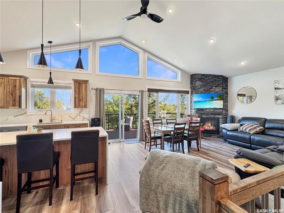 1358 Sq Ft 4-Season Bungalow – Iroquois Lake Just over an hour from Saskatoon and Prince Albert, this 1358 sq ft raised bungalow is a year-round retreat at beautiful Iroquois Lake. Known for its crystal-clear water, great fishing, and water sports, this lake is the perfect four-season destination—whether you're paddleboarding in the summer or ice fishing in the winter. The home features 5 bedrooms and 3 bathrooms, with an open-concept main floor boasting vaulted ceilings, large windows that fill the space with natural light, a stone natural gas fireplace, and a well-appointed kitchen with a large pantry. The primary suite includes a walk-in closet, fireplace, and ensuite, while two additional bedrooms complete the main level. The fully developed ICF basement offers 9' ceilings, 2 more bedrooms, a games room, and plenty of space for extra company. Utility features include a well, 300-gallon holding tank, 1500-gallon septic, reverse osmosis system, Starlink internet, and video monitoring. The attached garage provides 12' ceilings for storage. Also for added convenience there is a dock space that can be transferred. Outdoor living shines with two large decks—perfect for morning coffee or evening wine. An adjoining lot is also available, ideally suited for a future cabin, a large shop for all your lake toys, or as an investment to resell. Located just steps from the lake and public beach, this property is an excellent opportunity to enjoy lake life in comfort and style. This could be your happy place.
