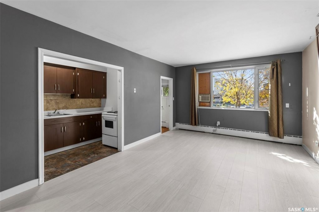 Welcome to #13 - 400 4th Avenue North in City Park. This sunny (south facing) open concept bachelor style condo features updated laminate flooring in the living room, open to the kitchen, complete with a 4 piece bathroom. Included is the murphy bed, fridge, and stove. A wall mounted air conditioner keeps you cool on those warm summer days! Great location for students and young professionals, with a quick walk to downtown shopping and restaurants, the U of S, hospitals, and the list goes on. This is a great opportunity to own vs renting, or purchase as an investment property.