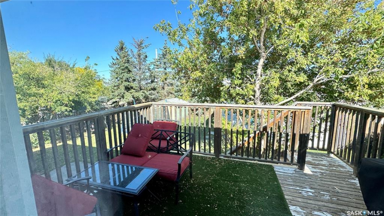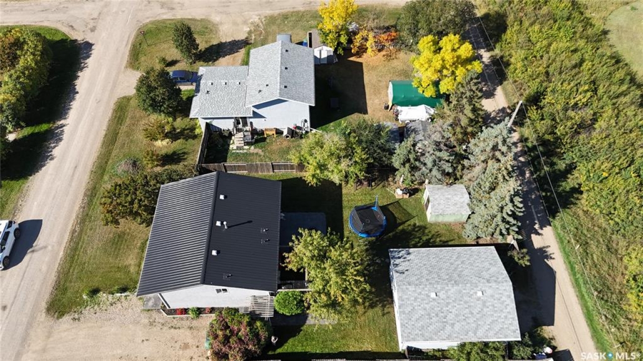 Welcome to 303 4th Street in Dundurn, Saskatchewan. This spacious 984 sq ft bi-level home is located just 30 minutes south of Saskatoon and only five minutes from Blackstrap Provincial Park. Perfect for families, first-time buyers, or anyone looking for more space, this 5-bedroom, 2-bathroom property offers excellent value with room to add instant equity. Set on a 66' x 126' lot, the yard features MATURE TREES, STUCCO SIDING, a METAL ROOF on the house (garage has asphalt shingles), and an OVERSIZED 28' x 24' fully insulated double detached garage. Inside, the bright, functional layout includes a welcoming living room with large SOUTH FACING windows, a kitchen with concrete countertops, white cabinetry, pantry, and stainless steel appliances. The adjacent dining nook opens to the back deck, creating an easy indoor-outdoor flow. Durable laminate flooring is found throughout the home for a clean, modern look. The main floor offers three bedrooms and a full 4-piece bathroom. The fully finished basement adds two more spacious bedrooms, a family room, a 3-piece bathroom, extra storage and laundry/utility space. Recent updates include a washer/dryer, laminate flooring, trim, bathroom fixtures, and the home is equipped with forced-air natural gas heating, an owned furnace, and a gas water heater. Appliances are included, making this home move-in ready. This Dundurn real estate listing backs onto open fields for peaceful prairie views while keeping you close to Saskatoon and Blackstrap Provincial Park. A rare opportunity to enjoy small-town living with modern convenience!
