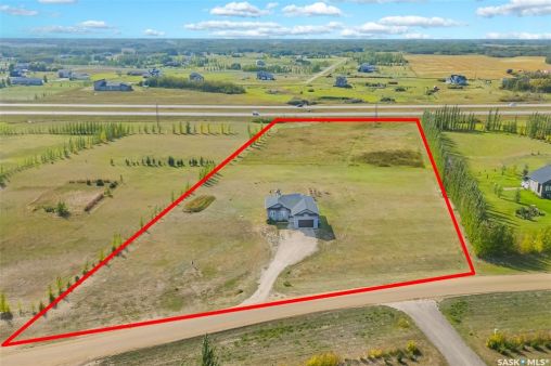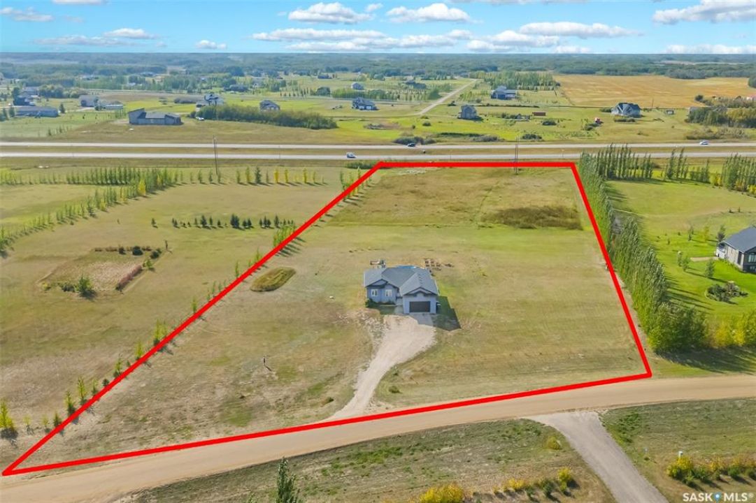 Welcome to this South Country Estates acreage, just 10 minutes south of Saskatoon off HWY 11 in the RM of Dundurn. This 1,348sqft custom bungalow blends modern comfort with country charm. The main floor boasts an open layout with a bright living room, cozy fireplace, and stylish kitchen featuring granite counters, island, and walk-in pantry. The dining area leads to a west-facing deck with gazebo and natural gas hookup—ideal for entertaining. The primary suite includes a walk-in closet and 4-pc ensuite, with two more bedrooms completing the main floor. The basement offers excellent potential, with a family room, games area, 4-pc bath, laundry, den, and 4th bedroom awaiting your finishing touches to the ceiling. A heated 24x26 garage with 8-ft door provides ample storage. Outdoors, enjoy the above-ground pool, play structure, garden beds, and wide-open space. Fibre internet, natural gas, and public water line add convenience, while Clavet School bus pickup is right at the driveway. Perfect for a growing family seeking a peaceful acreage lifestyle with an easy commute to the city.