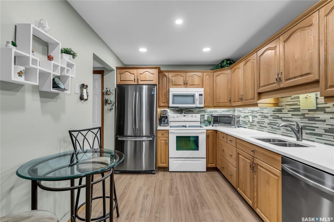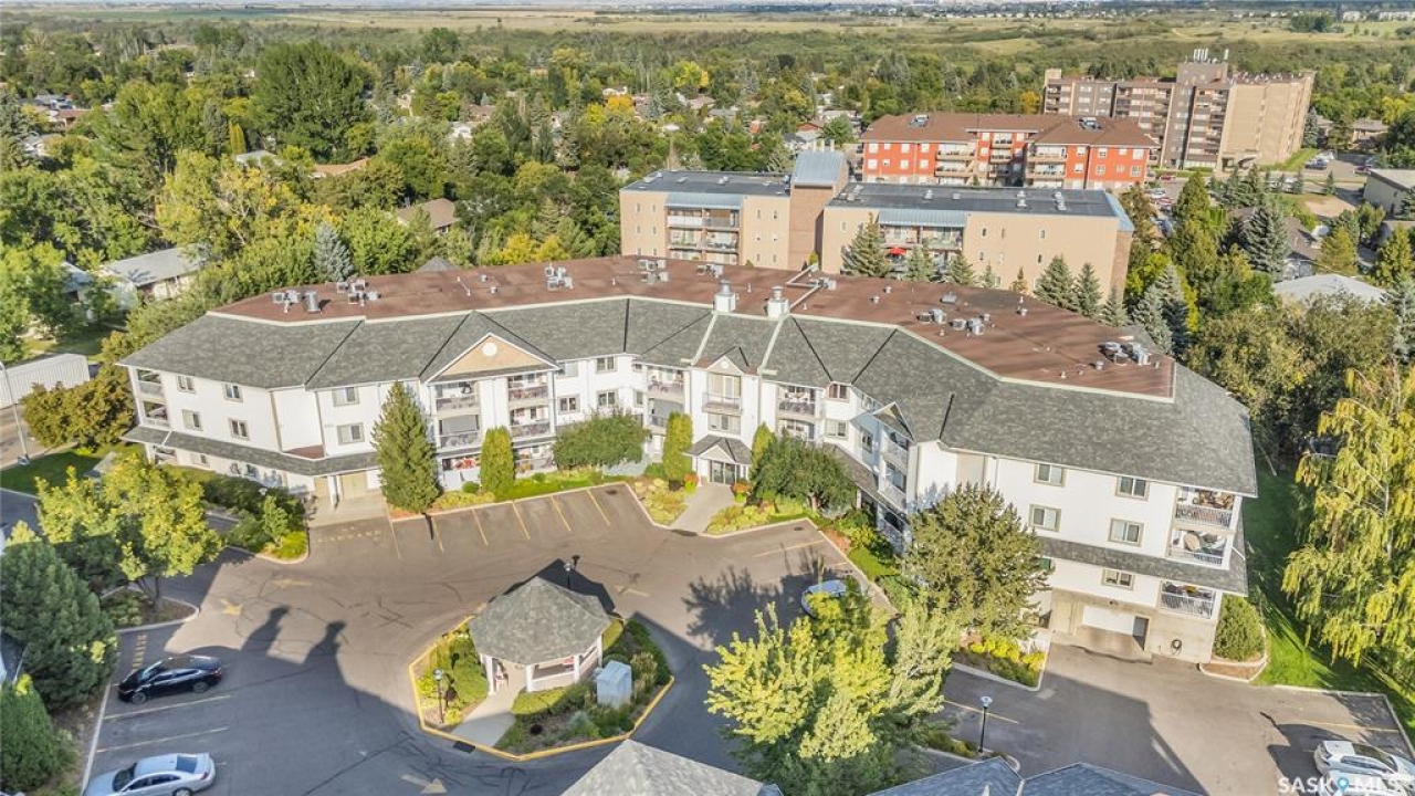 124-305 Pinehouse Dr – Willow Crest Condominiums | Lawson Heights | MLS � Welcome to Willow Crest in Lawson Heights! This bright and spacious 1,139 sq. ft. main floor condo offers a highly desirable layout and prime location just steps from the river, walking trails, shopping, medical services, restaurants, and transit. Featuring a functional eat-in kitchen with oak cabinetry, tile backsplash, recessed lighting, under-cabinet lighting, and four appliances included, this unit is designed for comfortable everyday living. The formal dining area opens to a large living room with a garden door to the private, northeast-facing balcony—a perfect spot to enjoy morning sun and peaceful views. The oversized primary bedroom includes a 3-piece ensuite and walk-in closet. The second bedroom is thoughtfully designed with a built-in Murphy bed and desk, ideal for guests or a home office. Additional features include in-floor heating, central air conditioning, and central vacuum with attachments. Three storage areas are included: one on the balcony, a hallway storage unit (#124), and a secure locker in the parkade (#22). Also included is one underground parking stall (#37). The building offers excellent amenities, including an amenities room with exercise equipment and a pool table, as well as plenty of visitor parking right outside the main entrance.