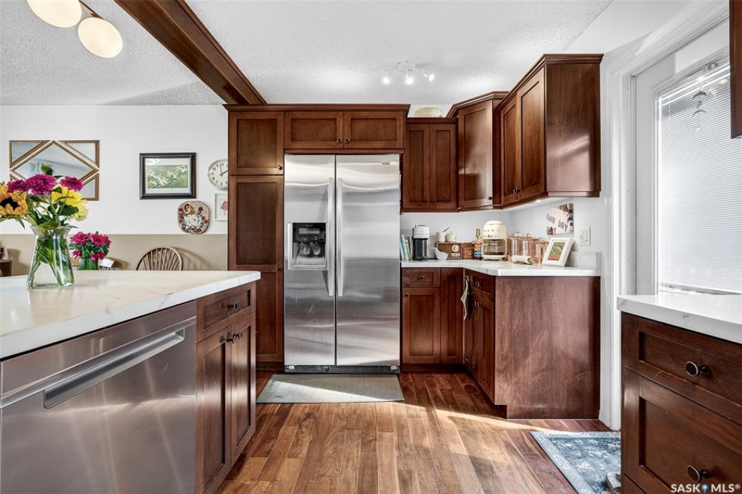 Warm & Welcoming Bi-Level on South Hill — Steps from the New School! This lovely bi-level is perfectly nestled in a quiet South Hill neighborhood — just a short walk from the brand-new joint-use elementary school, making it an ideal spot for families with young kids or anyone who values a great community feel. This home features 3 comfortable bedrooms and 2 bathrooms, with a layout that's both functional and cozy. The main floor features a bright, open living area, a kitchen that offers plenty of cabinet space and a handy island — perfect for meal prep, casual breakfasts, or helping with homework while cooking dinner. Down the hall you will find two bedrooms, and a full 4-piece bath! Downstairs, there's even more room to spread out with a large family room, a great sized bedroom, a convenient half-bath, and tons of space for movie nights, playtime, or guests. Through the garden door in the kitchen, enjoy easy access to your backyard oasis — complete with a deck, patio area, and an awesome kids' play structure! Whether you're entertaining friends or enjoying a quiet evening outside, this space is ready for it all. Finally, the oversized double garage is a real bonus —perfect for hobbies, storage, and keeping the snow off the car come winter!! Don't miss your chance to make this South Hill gem yours!