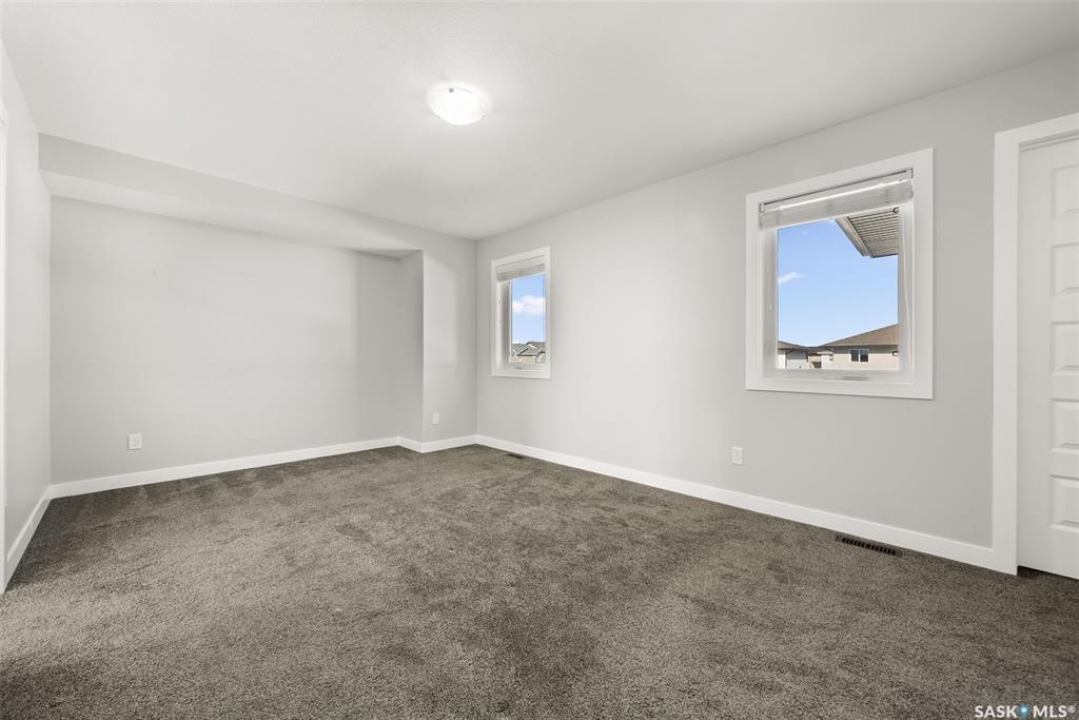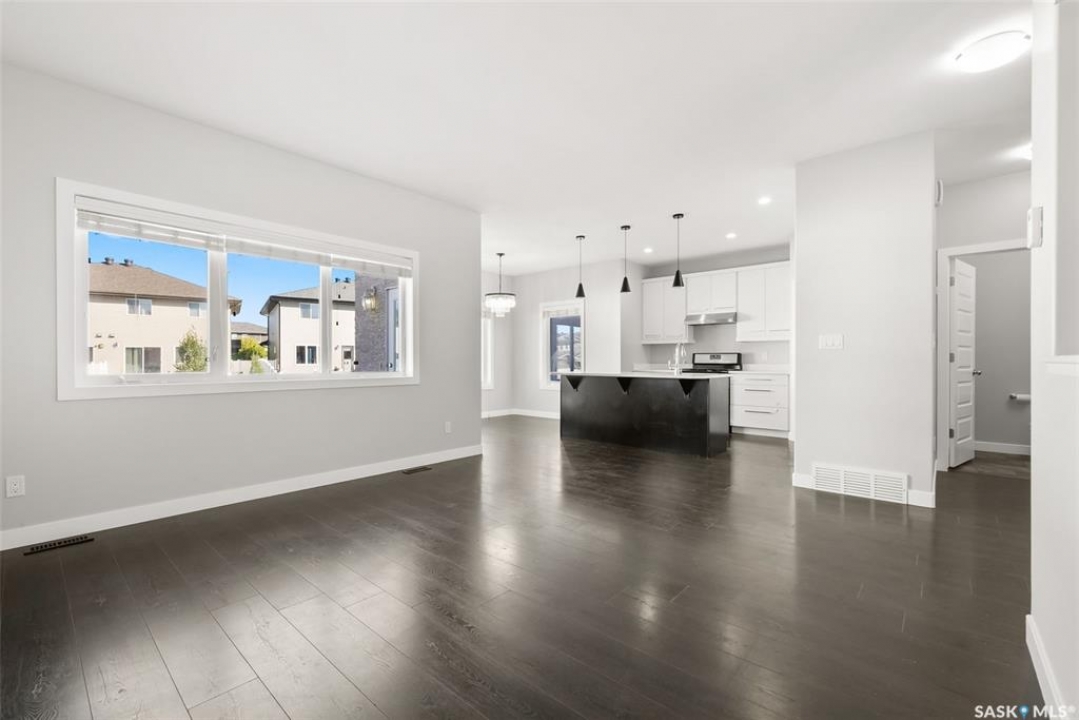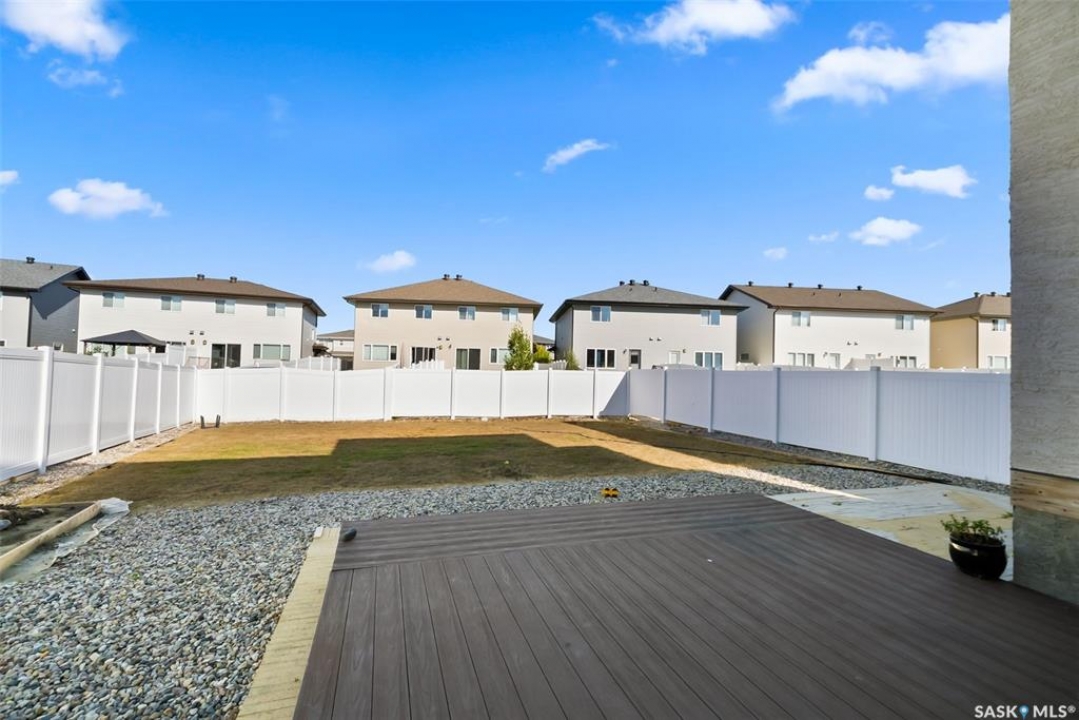 Welcome to 5308 Green Alder Way E, a beautiful 2-storey home located in the highly sought-after neighbourhood of Greens on Gardiner. Built in 2016, this 1,656 sq. ft. property offers modern finishes, a functional layout, and plenty of space for the whole family. The main floor is bright and open, featuring a spacious living room with a striking feature wall and fireplace, perfect for cozy evenings. The sleek kitchen showcases white cabinetry, quartz countertops, stainless steel appliances, a large island with bar seating, and is complimented by a stylish dining area with a modern chandelier and large windows overlooking the backyard. A convenient 2-piece bath and main floor laundry complete this level. Upstairs, you'll find three comfortable bedrooms, including a large primary suite with a walk-in closet and a 5-piece ensuite featuring double sinks, a soaker tub, and a separate shower. Two additional bedrooms and a full 4-piece bath provide plenty of room for family or guests. The fully finished basement offers even more living space with a spacious recreation room, an additional bedroom, office space, and a 4-piece bath—ideal for teenagers, extended family, or a home office setup. Outside, the backyard is fully fenced and landscaped with a patio, deck, and low-maintenance rock accents—ready for you to add your personal touch. The double attached garage provides secure parking and extra storage. Located within walking distance to schools, parks, shopping, and all East Regina amenities, this home combines style, comfort, and convenience. This property is move-in ready and waiting for its next owners. Don't miss your opportunity to live in one of Regina's most desirable communities!