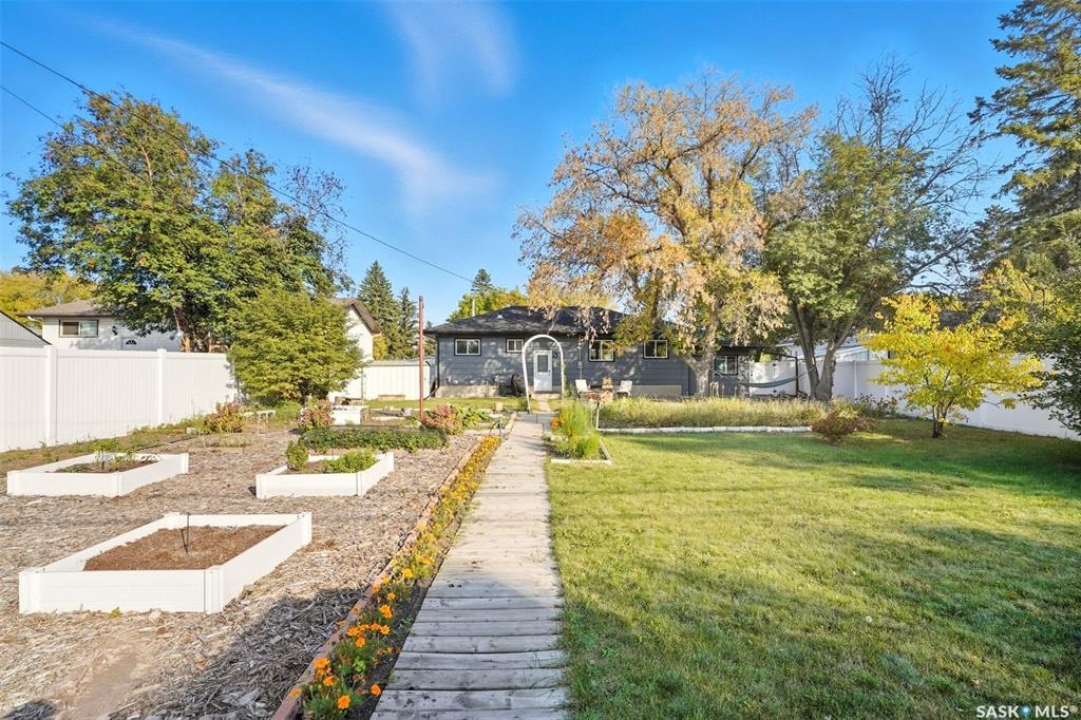 Looking for a home in the desirable Holliston neighbourhood? This 1,041 sq/ft bungalow is the perfect blend of character and updates, offering comfort, convenience, and excellent potential. The Main floor features 3 Bedrooms & 1 Bath, Original hardwood floors throughout much of the home with an Updated kitchen and bathroom for modern style and function Newer windows and shingles plus a fresh coat of paint, making this home move-in ready. The lower level is Fully developed basement with a 1 bed, 1 bath nanny suite, Potential to convert to a secured separate suite for added income or extended family. The outside exterior an Irregular rectangular lot shape with impressive dimensions: 78' frontage, 60' width at back, approx. 144' deep sides. Fully fenced with low-maintenance white vinyl fencing Fully landscaped and established with garden boxes and perennials ready to bloom each spring. A Single attached garage for added convenience Holliston is one of Saskatoon's most sought-after neighbourhoods—close to schools, shopping, Market Mall, parks, and easy access to Circle Drive and all city amenities. Size: 1,041 sq/ft bungalow Bedrooms: 3 up + 1 down Bathrooms: 2 total. October/November possession is possible Don't miss this opportunity to own in a fantastic neighbourhood with a property that checks all the boxes for family living, investment potential, and long-term value.
