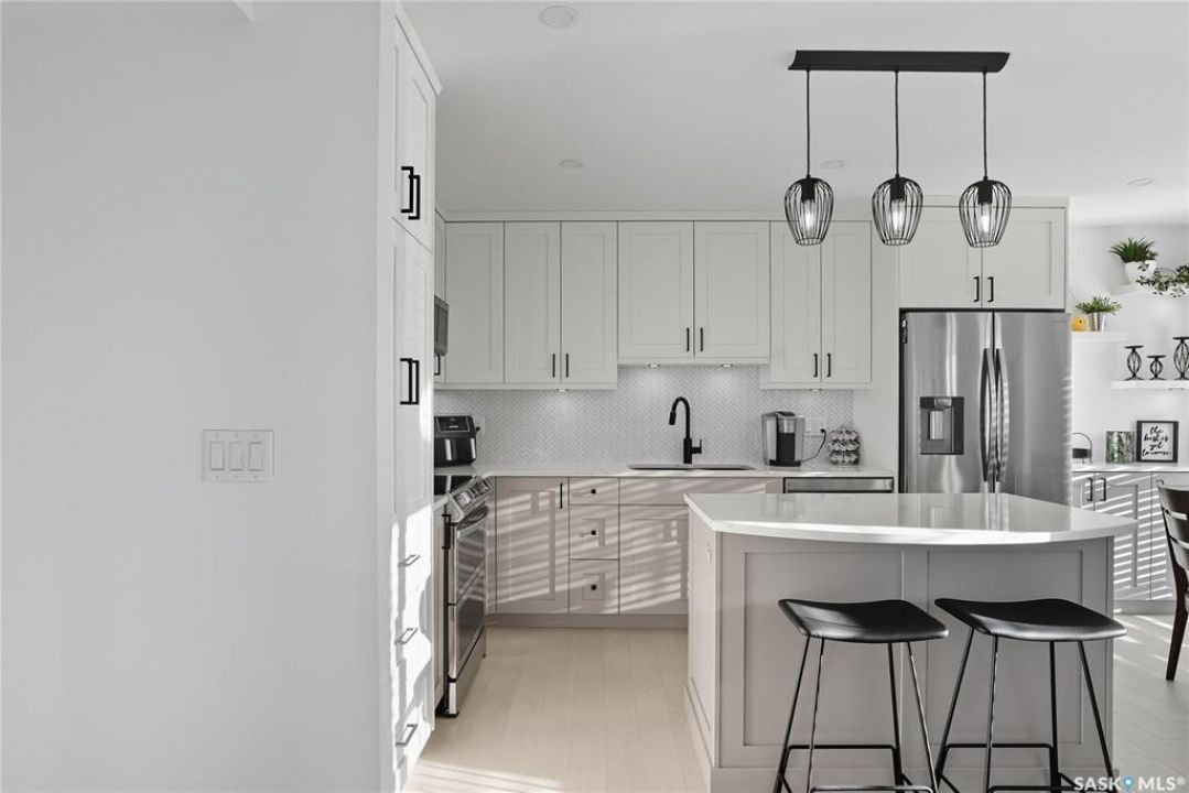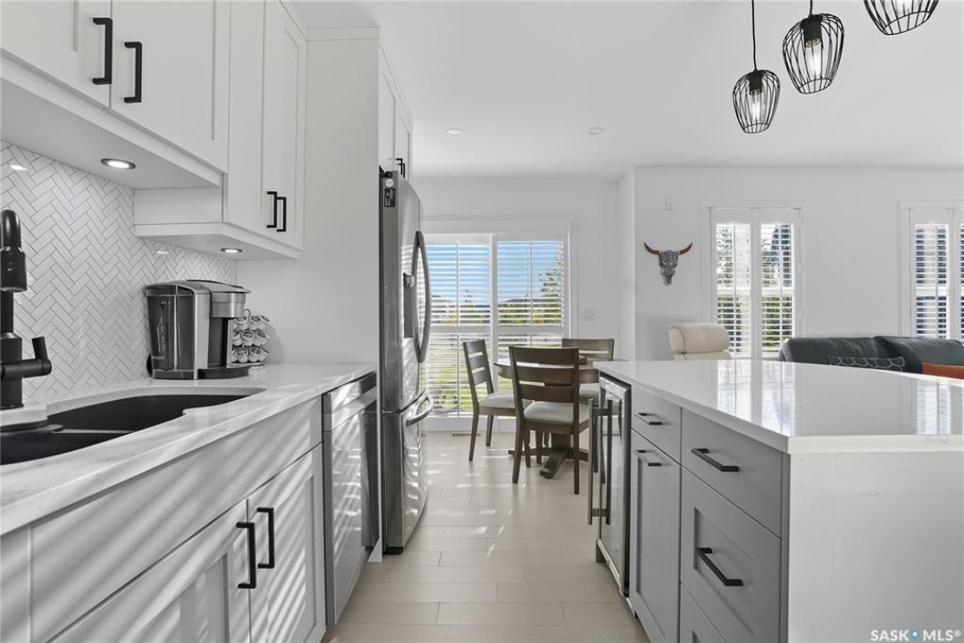 This exceptional corner unit townhome offers over $140,000 in high-end upgrades and boasts 1,341 sq ft of fully developed living space spread across all three levels. From the moment you step inside, the attention to detail and quality craftsmanship are evident. The main floor features a bright, open layout with hardwood flooring, a stylish 2-pc bathroom, and a completely redesigned kitchen with custom cabinetry, a built-in wine fridge in the island and premium finishes. A custom bar nook off the dining room adds both functionality and charm, making entertaining effortless. From here, head out the sliding doors to the southwest-facing patio, where you can soak up the sunshine, enjoy evening BBQs and dinners while overlooking a large green space. Upstairs, the spacious primary bedroom includes a walk-in closet and a stunning, fully renovated 3-pc Jack and Jill bathroom with a beautifully tiled shower. Two additional well-sized bedrooms complete this level. The fully developed basement offers a versatile rumpus room, 3-pc bathroom and laundry area- perfect for extra living or guest space. Additional upgrades include central air conditioning, new furnace, custom plantation shutters, humidifier, central vac, new flooring throughout and more- making this home truly move-in ready. Located in a prime spot close to visitor parking and an abundance of amenities including shopping, restaurants, schools and transit. Don't miss the opportunity to own this one-of-a-kind home in Rosewood that truly checks all the boxes! ****OPEN HOUSE SUNDAY OCT.5th 1-3pm****