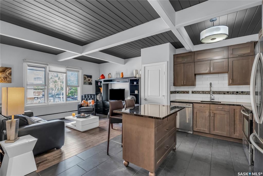 This sleek top-floor 1-bedroom, 1-bathroom condo is perfect for those seeking both style and convenience. The kitchen features beautiful granite countertops, a functional island, and ample counter space for meal prep and entertaining. With in-suite laundry, 10-foot ceilings, and an abundance of natural light, the space feels open and inviting. It also comes with one electrified parking spot. Additionally, the condo is available fully furnished, making it an ideal turn-key investment property for those looking to generate rental income.