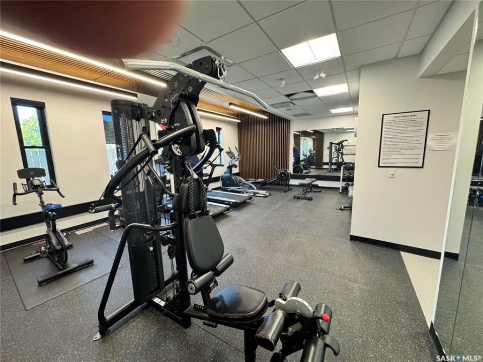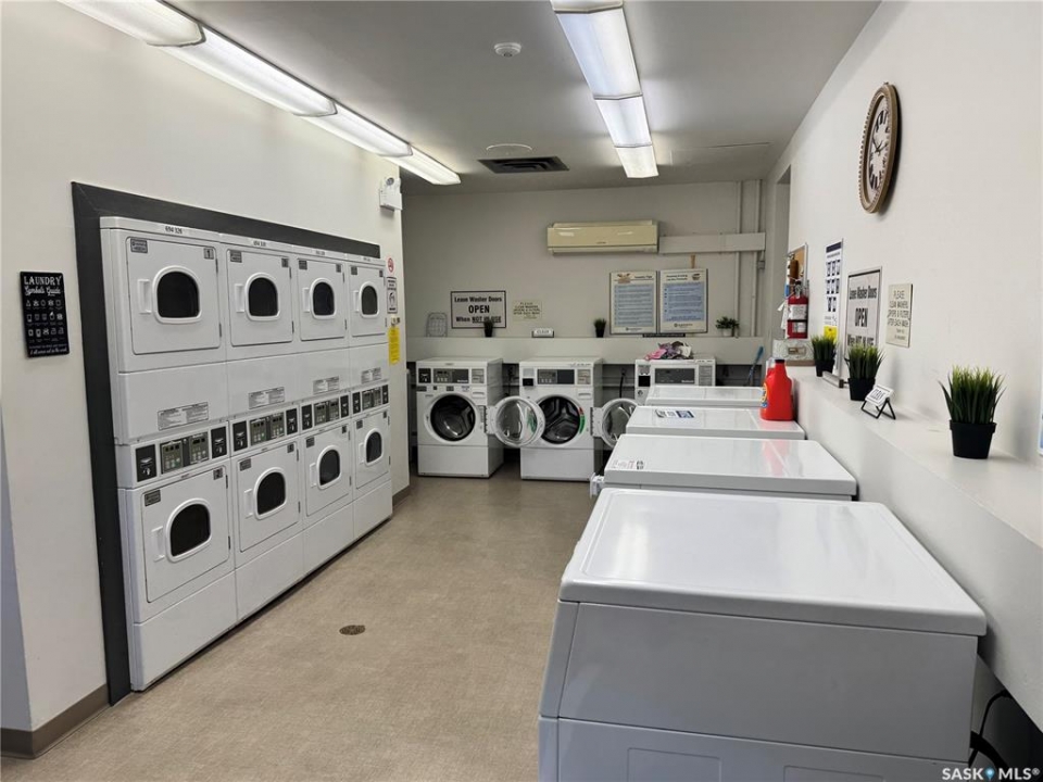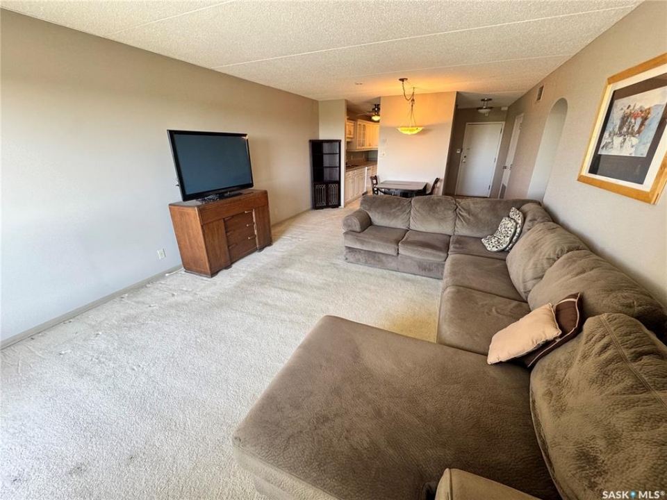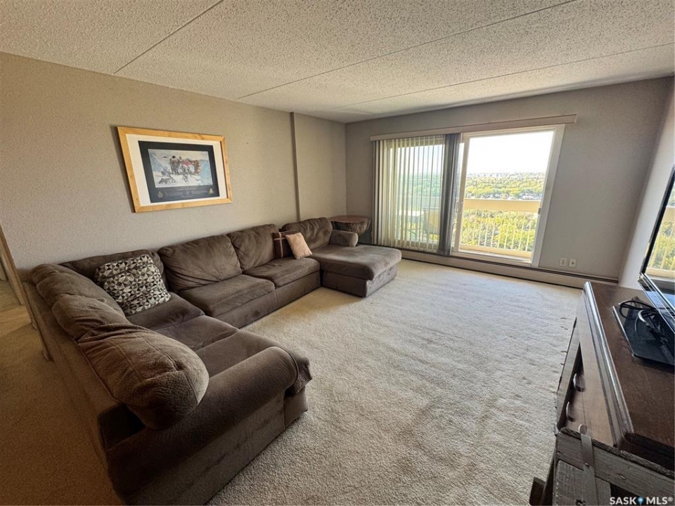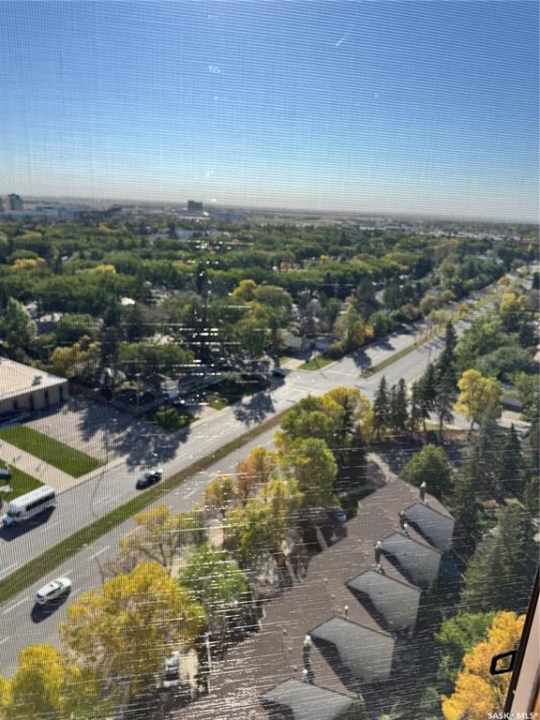 Beautiful 18th-Floor Condo with Panoramic Sunset Views Welcome to this rare opportunity to own a 969 sq. ft. two-bedroom, two-bath condo perched high on the 18th floor of the Iconic Roberts Plaza, with stunning Southwest views of the city skyline and unforgettable sunsets. This solid, full-concrete building offers exceptional soundproofing with concrete construction between floors—providing peace and quiet in the heart of the city. Inside, you'll appreciate the updated kitchen with an abundance of cabinetry, making meal prep and storage a breeze. The spacious floor plan includes in-unit storage and two generously sized bedrooms. The primary bedroom features a full bank of closets along one wall, ensuring ample space for all your wardrobe needs. The building offers top notch amenities, including: * Heated underground parking * Indoor pool and hot tub * Brand new sauna * Recently refurbished weight room *Indoor Racquetball and Squash Court * Short-term rental guest suite for visitors *Indoor bike storage. * 2 Newly installed Elevators. Adding to the appeal, the condo fees are all-inclusive, covering energy, power, water, and sewer—making this home not only comfortable but also a smart investment. If you're looking for convenience, incredible views, and unmatched value in a quiet, well-maintained concrete building, this condo is a must-see Fantastic location with a short walk to Connexus Art Center, the University, and directly across the street from Wascana Park.