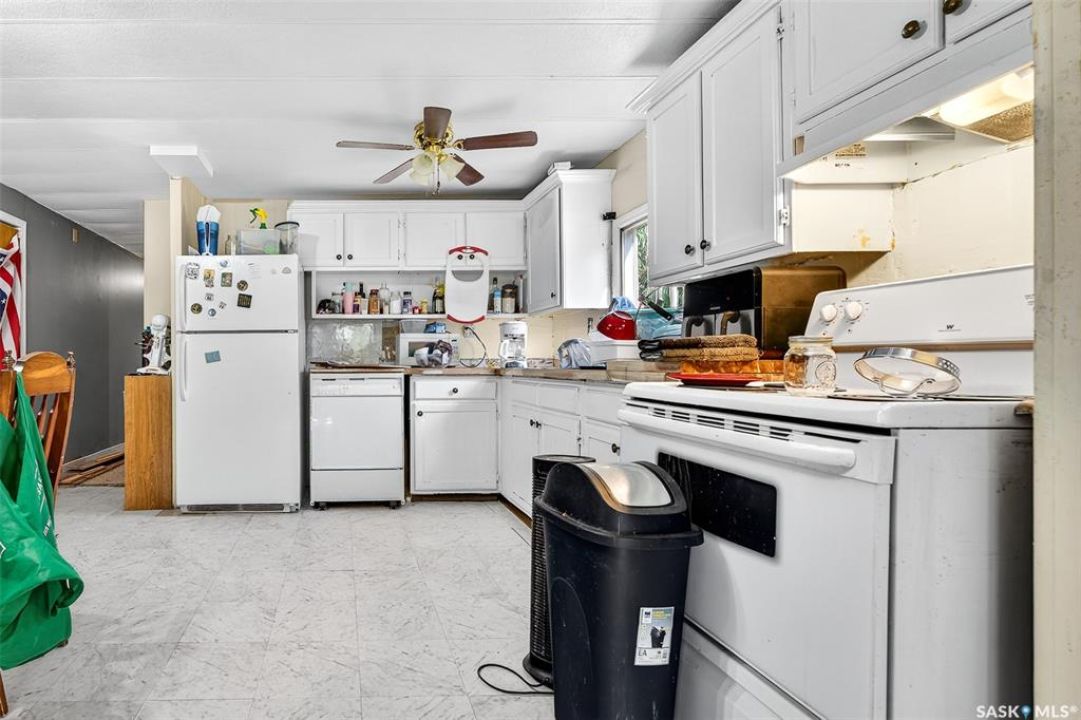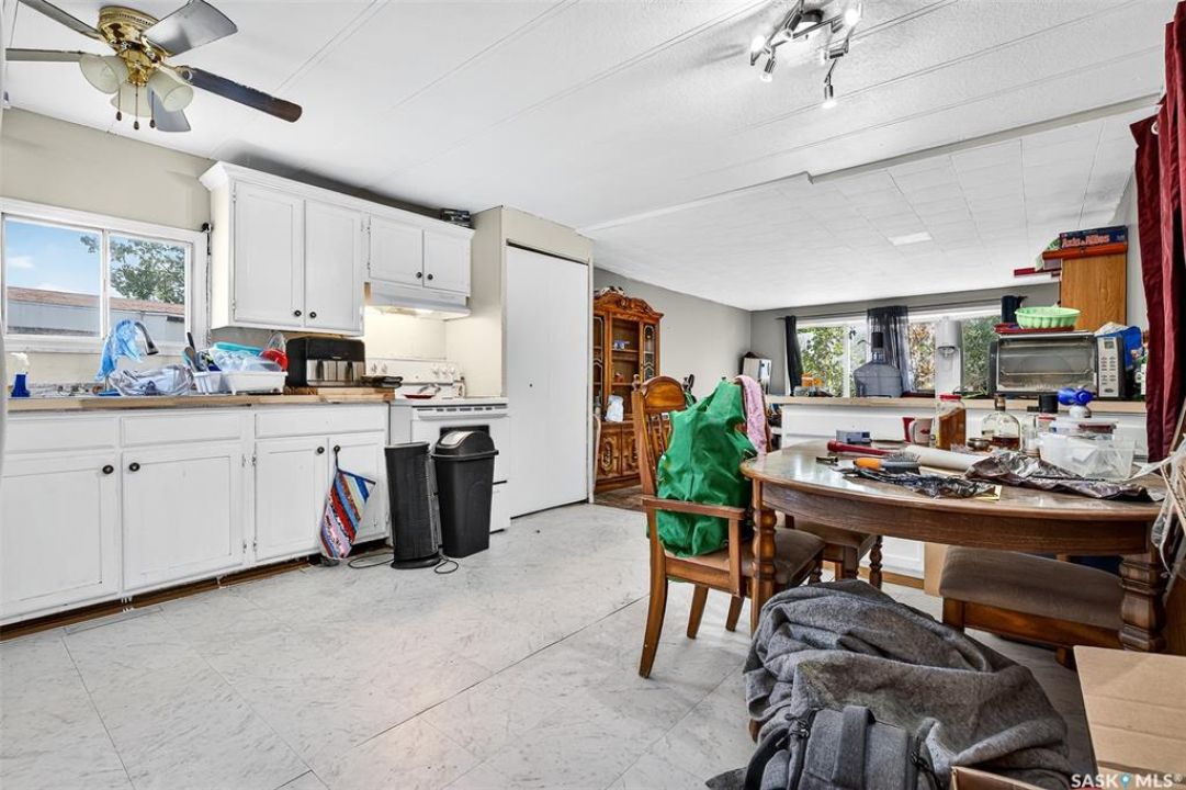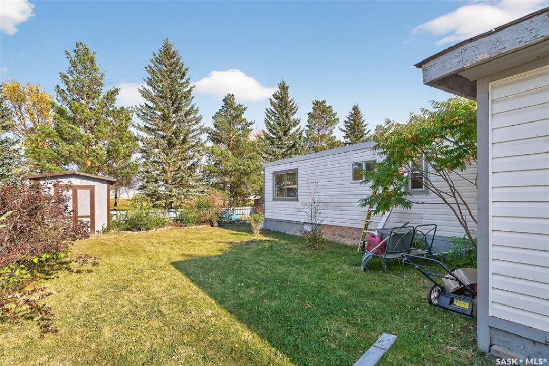 Looking for affordable living? This cute mobile home boasting over 1,000 sq.ft. in Caronport could be just the place! Backing a green space with great views of the prairies! At the front we have a small covered deck leading into a large mudroom. The open concept living area boasts lots of natural light, ample cabinets and a spacious feel. Heading down the hall we find a large bedroom and a laundry room. Toward the back of the home we have a large primary bedroom and a 4 piece bathroom. With some TLC this could be a super cute place to call home! Outside we have a beautiful yard giving you the perfect place to relax in the evening or to have your morning coffee. Complete with a garden shed and 2 off street parking spaces. Located just 15 minutes from Moose Jaw - Caronport has a K-12 School, post office, and a gas station. Reach out today to book your showing!